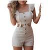 Ropa de Mujer de Exportación Europea y Americana 2023 con Elegante Corte en la Cintura, Monos sin Mangas con Botones y Volantes