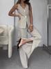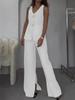 Traje elegante de mujer europea y americana transfronteriza de 2024 con chaleco sin mangas, pantalones de pierna ancha y cintura alta con cuello en V de color sólido