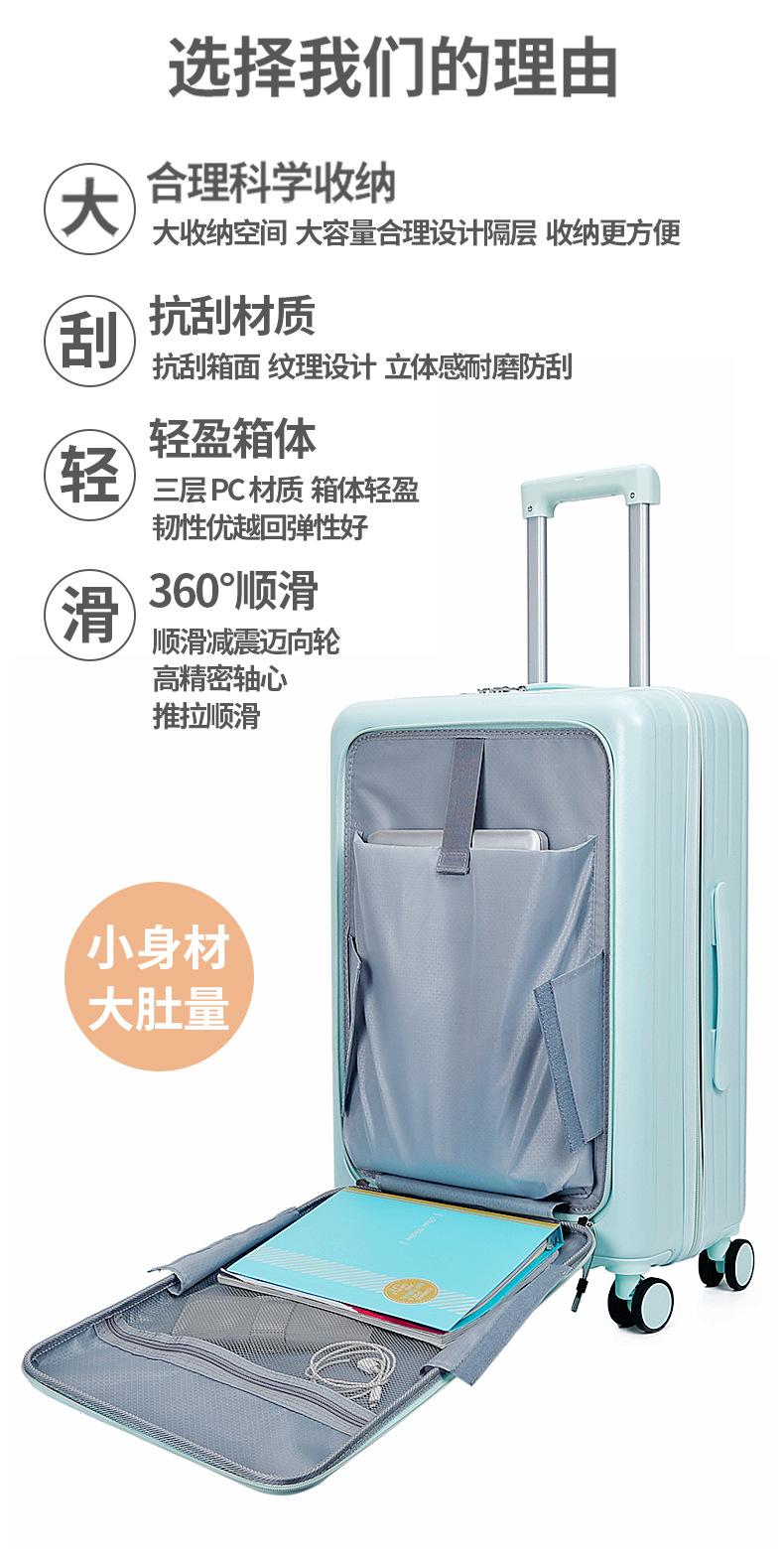 Maleta multifunción con apertura frontal para hombre, nueva, para estudiante femenina, de 20 pulgadas, con ruedas, para embarque, secreta