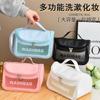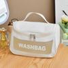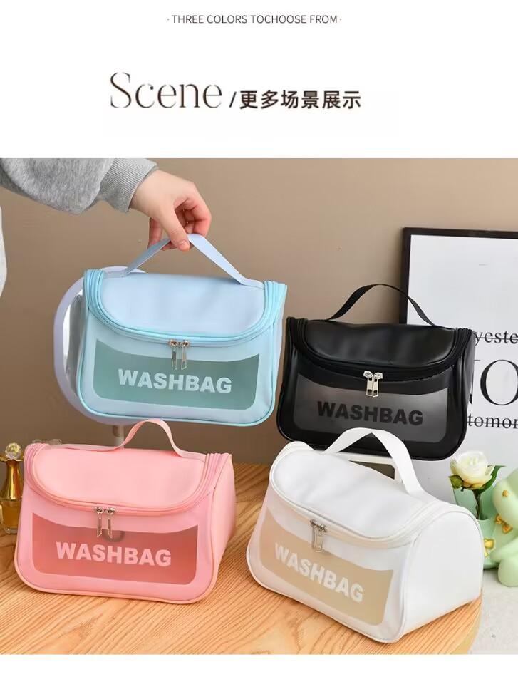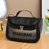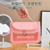 Bolsa de cosméticos curvada de PU esmerilada, bolsa de lavado portátil impermeable de gran capacidad, bolsa de almacenamiento de lavado con gancho multifuncional