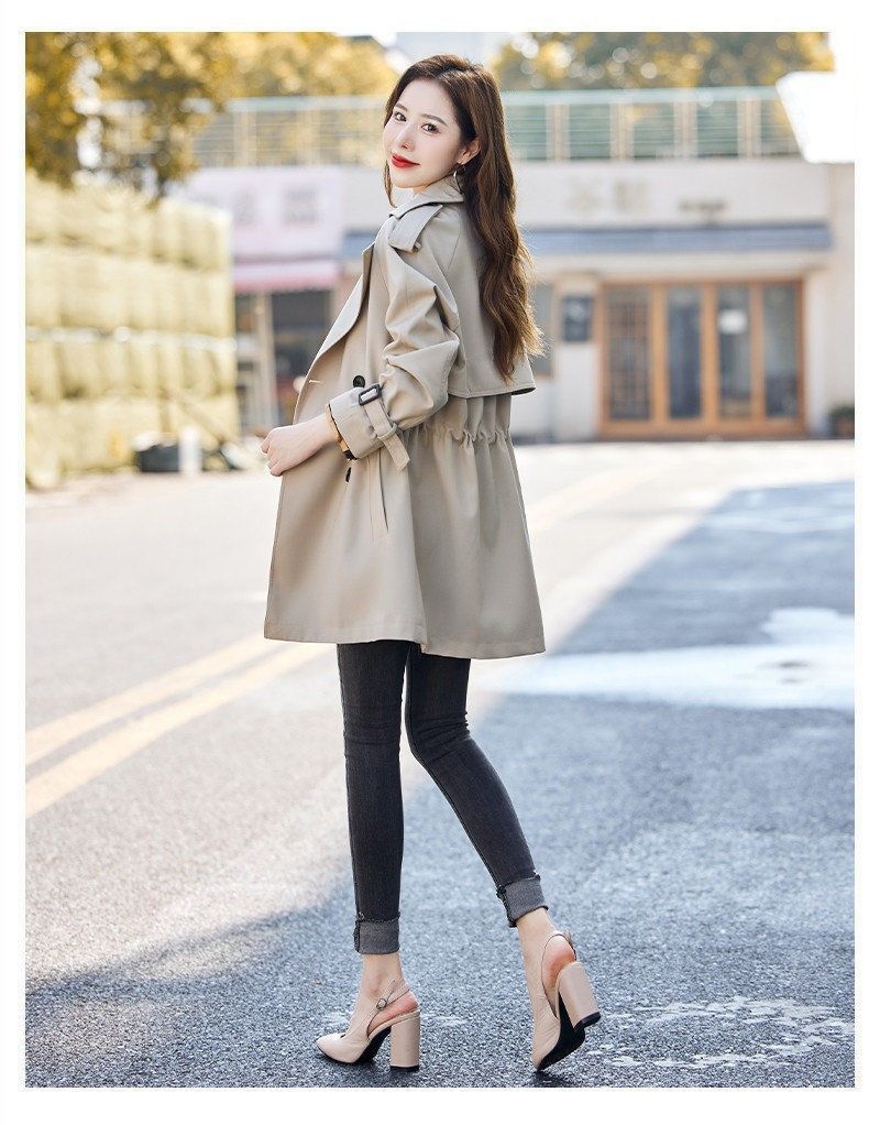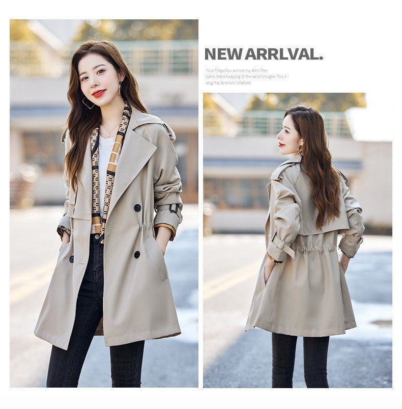 Gabardina para mujer de longitud media primavera y otoño 2024 Nuevo estilo británico pequeño versátil talla grande abrigo adelgazante ajustado a la cintura para mujer