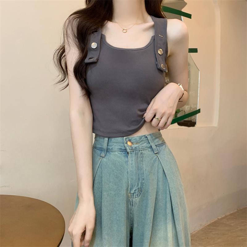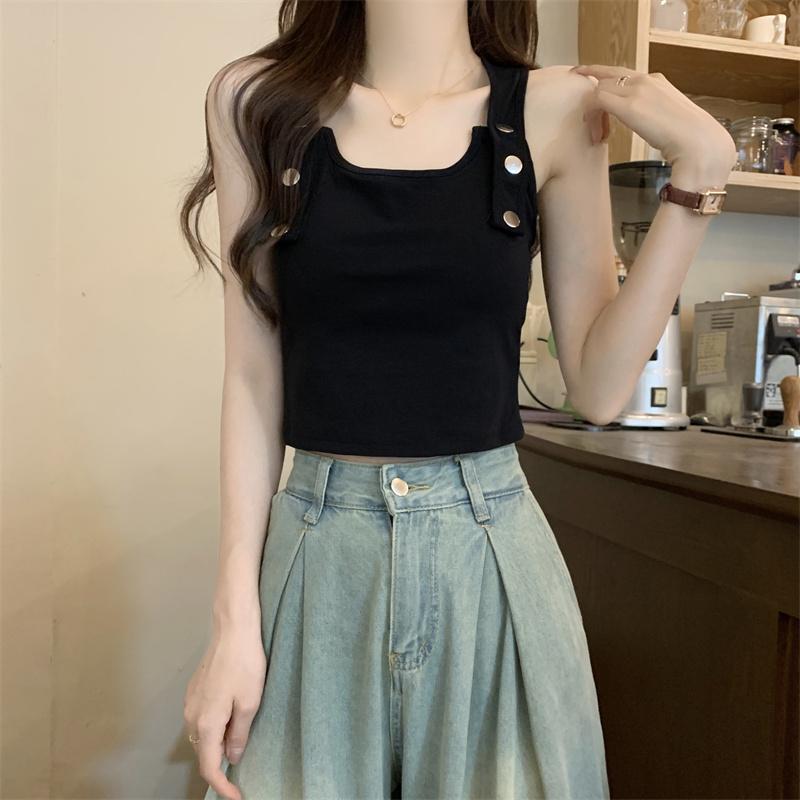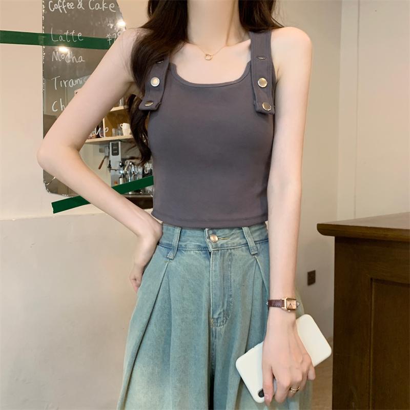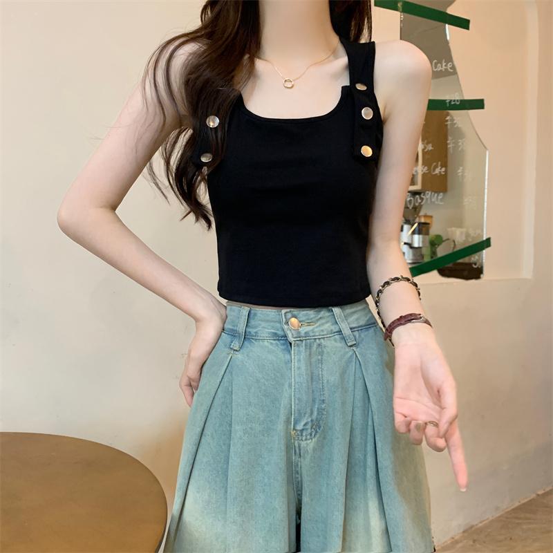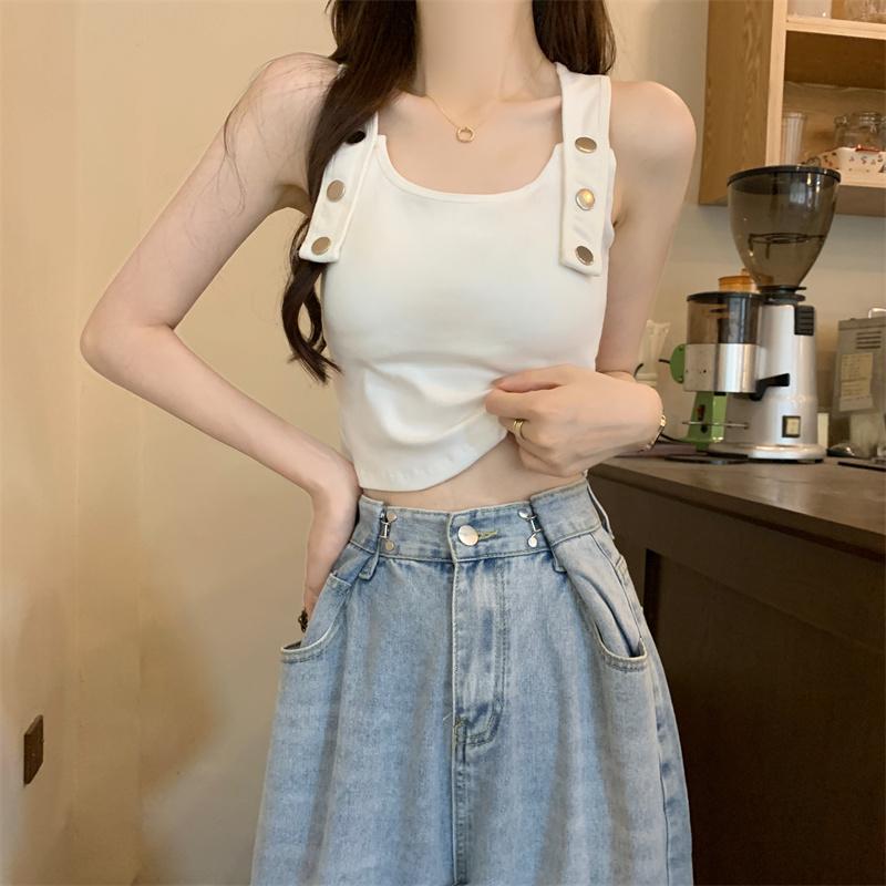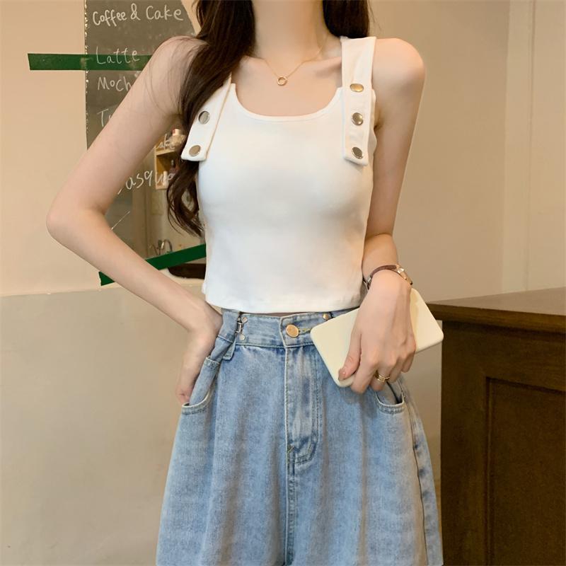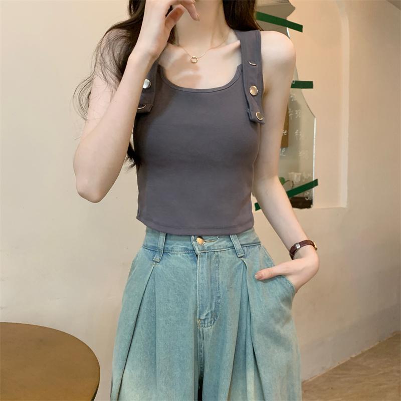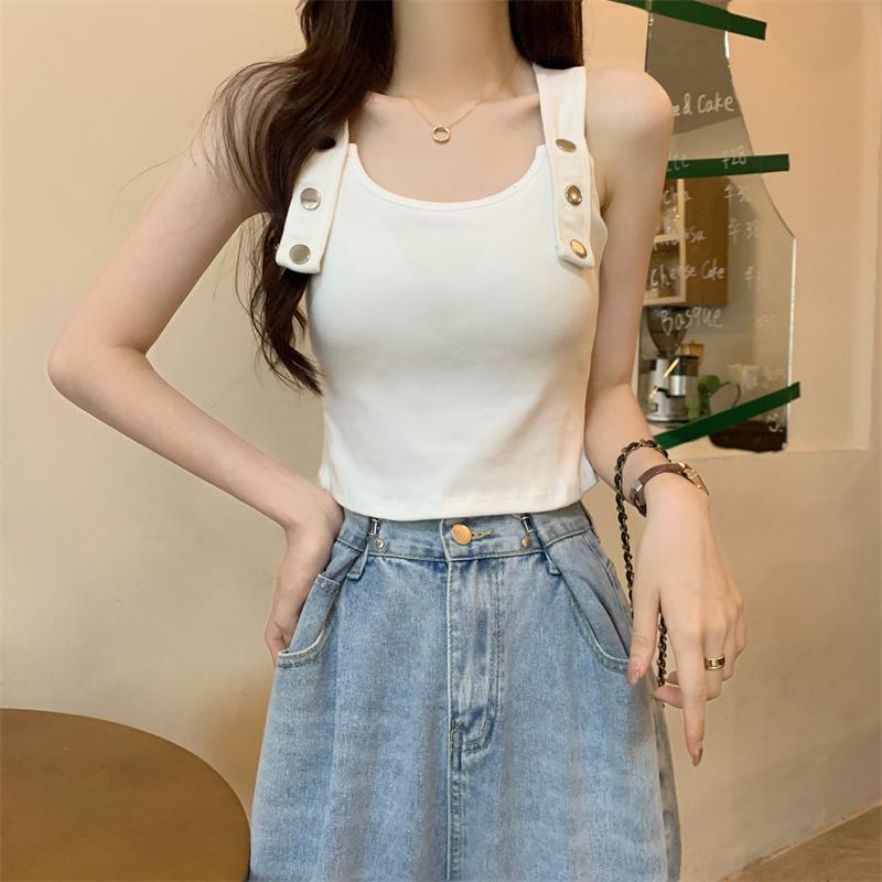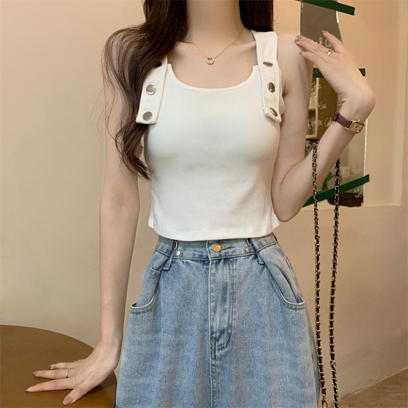 Camisola con tirantes anchos para mujer, ropa interior de verano, nuevo diseño adelgazante, prenda exterior versátil, top corto sin mangas