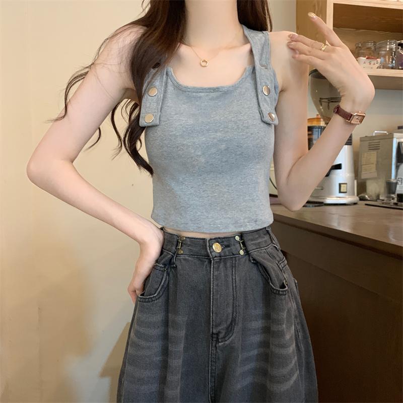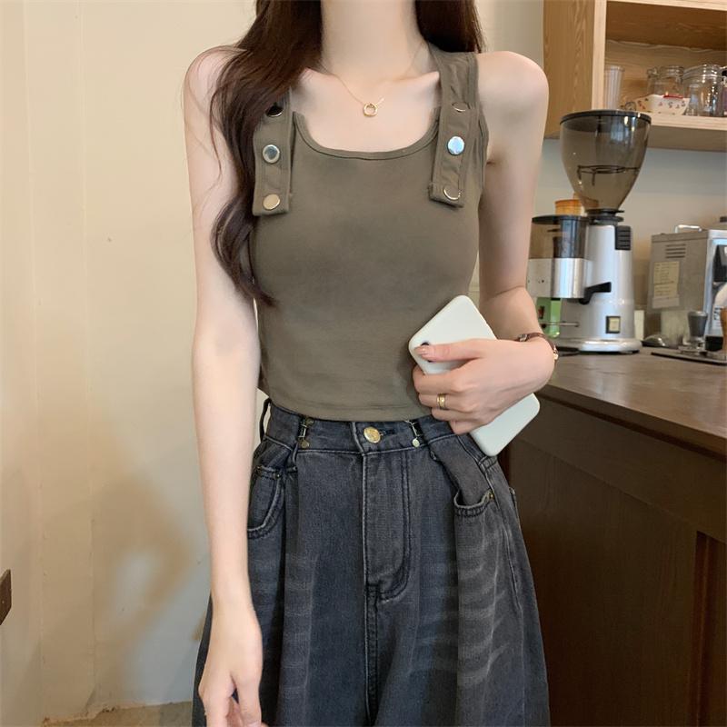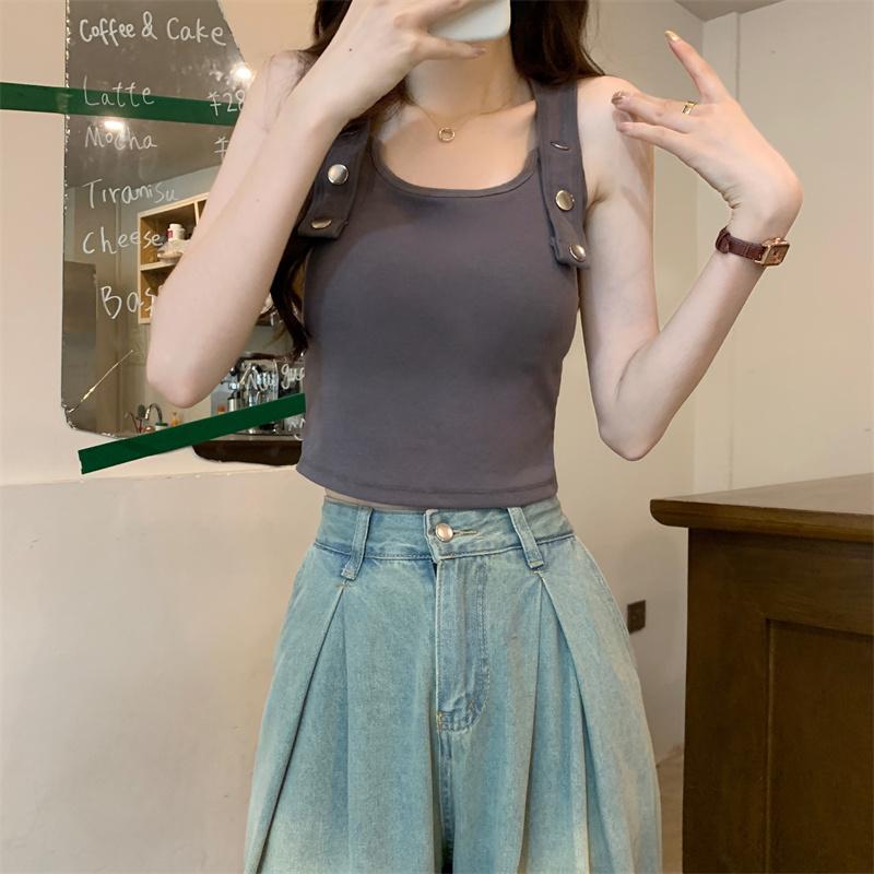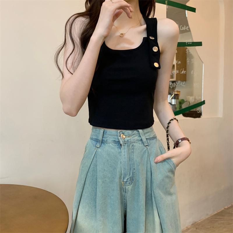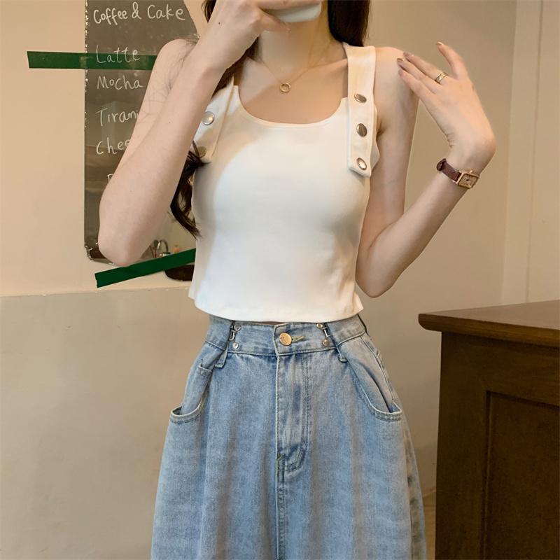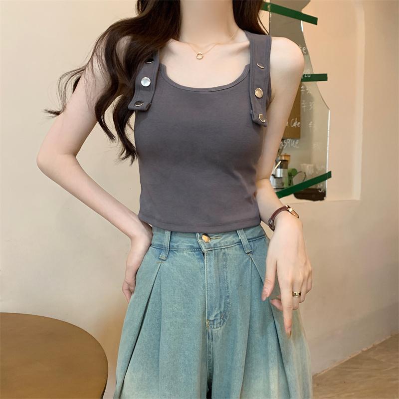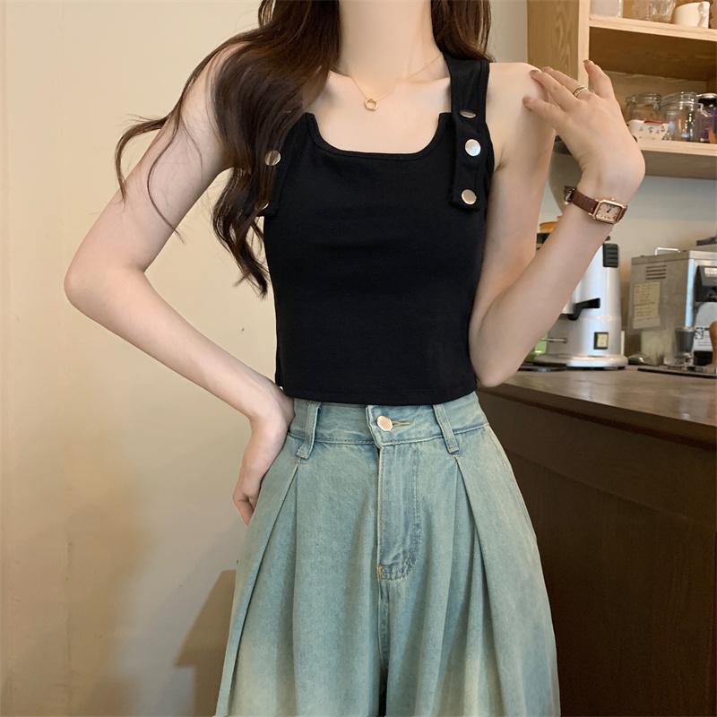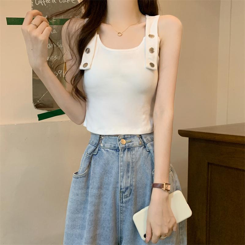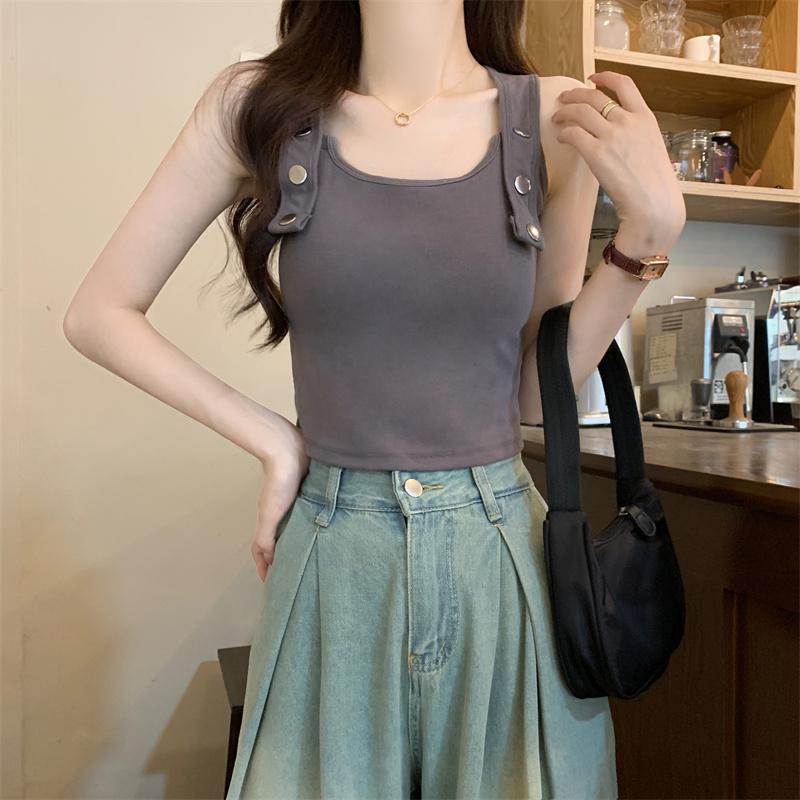 Camisola con tirantes anchos para mujer, ropa interior de verano, nuevo diseño adelgazante, prenda exterior versátil, top corto sin mangas