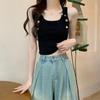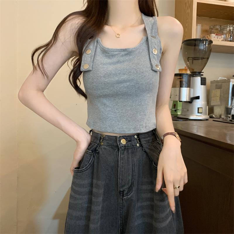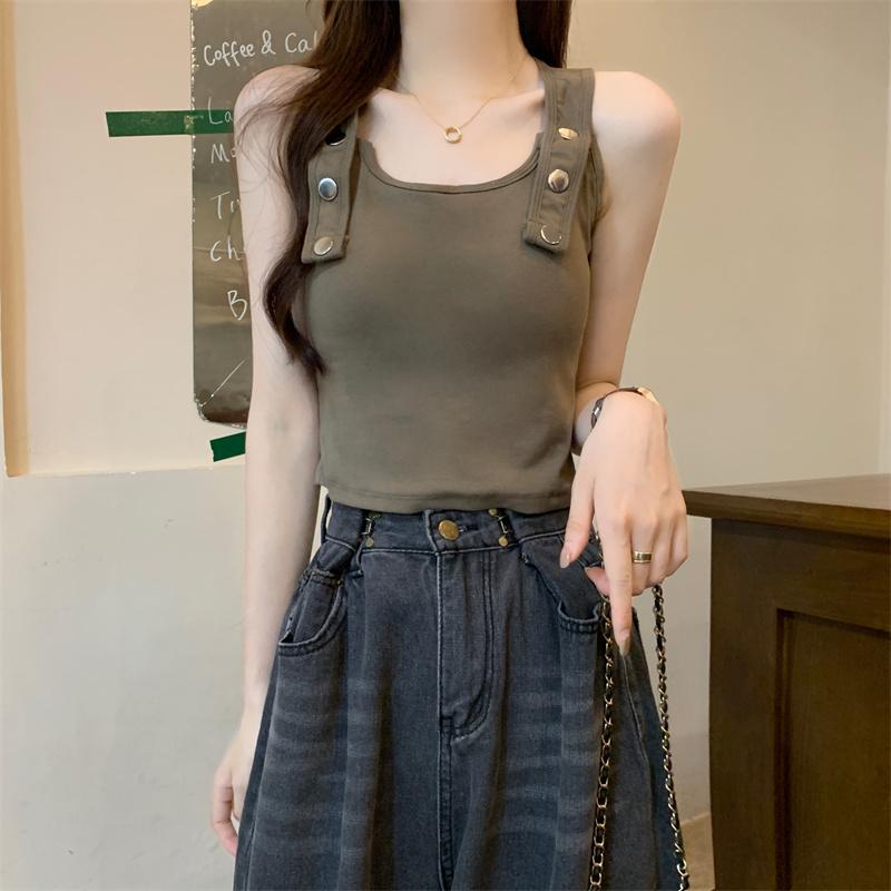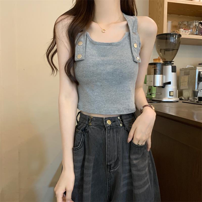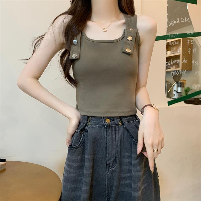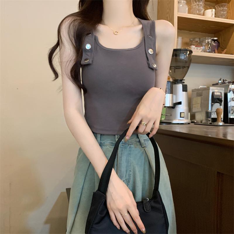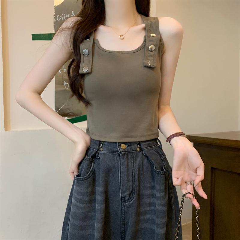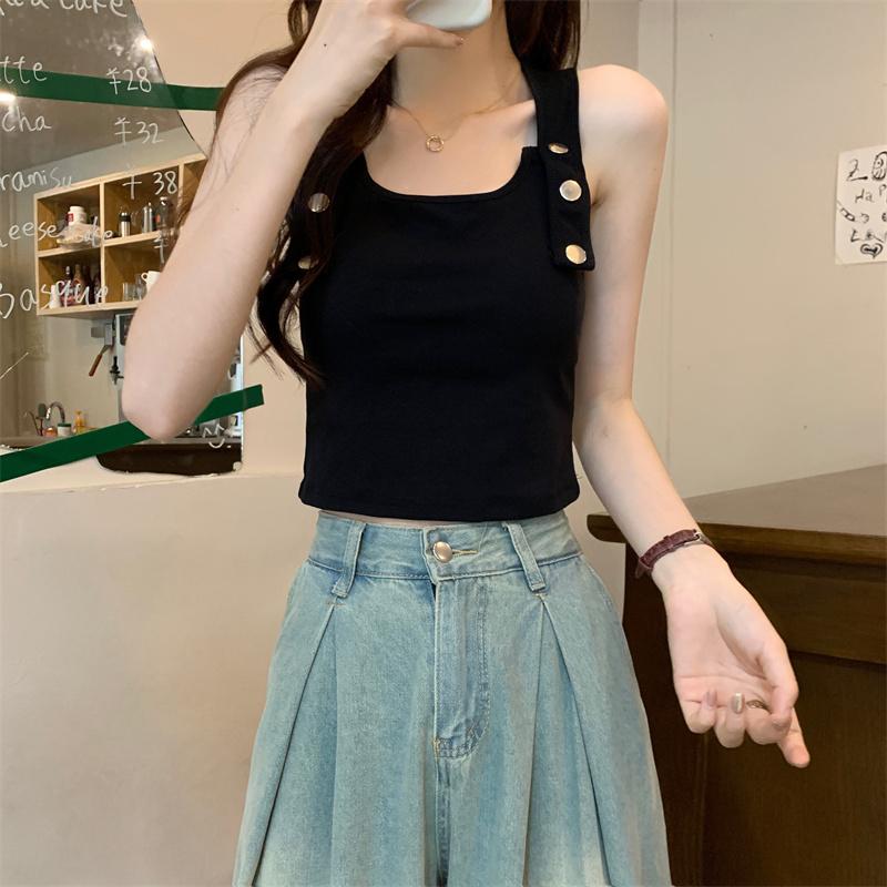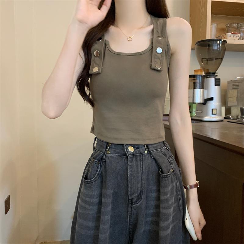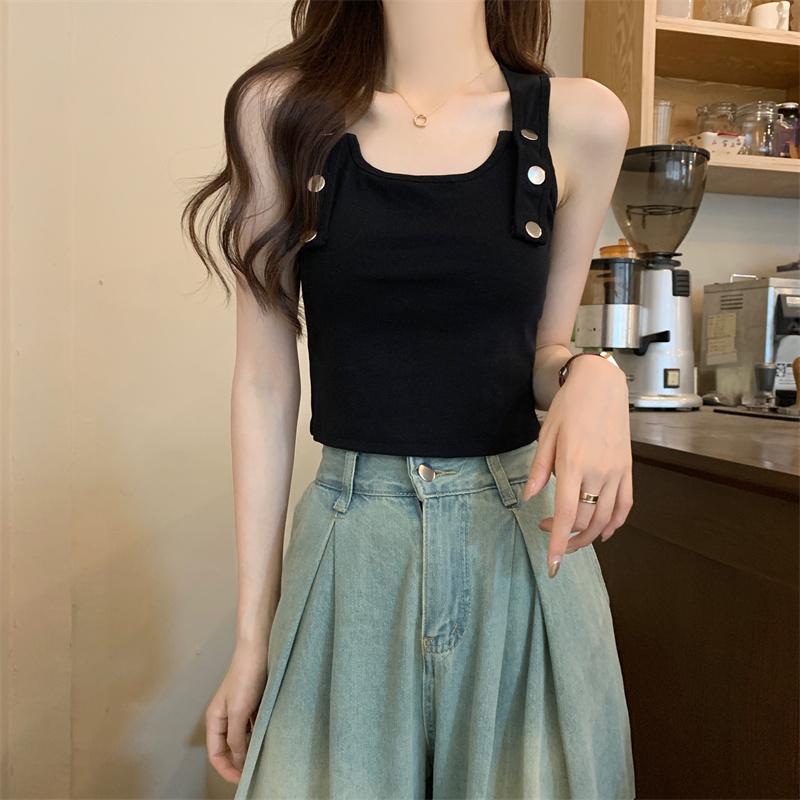 Camisola con tirantes anchos para mujer, ropa interior de verano, nuevo diseño adelgazante, prenda exterior versátil, top corto sin mangas