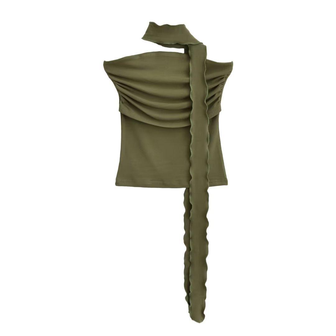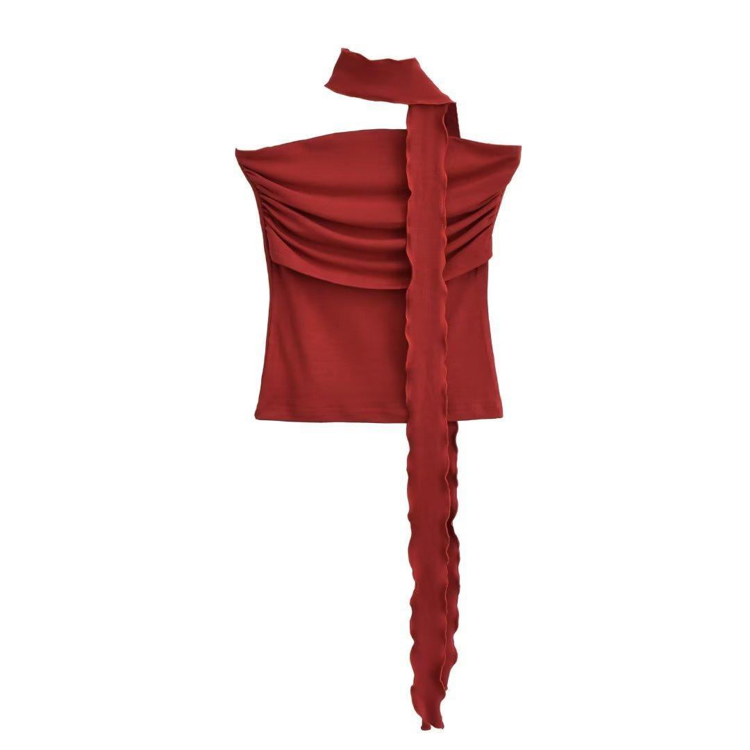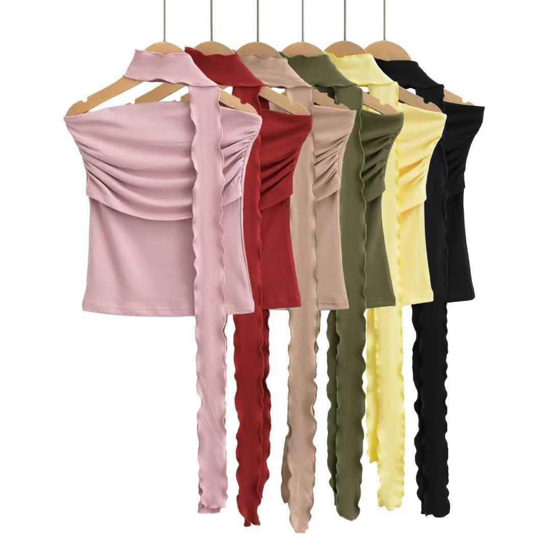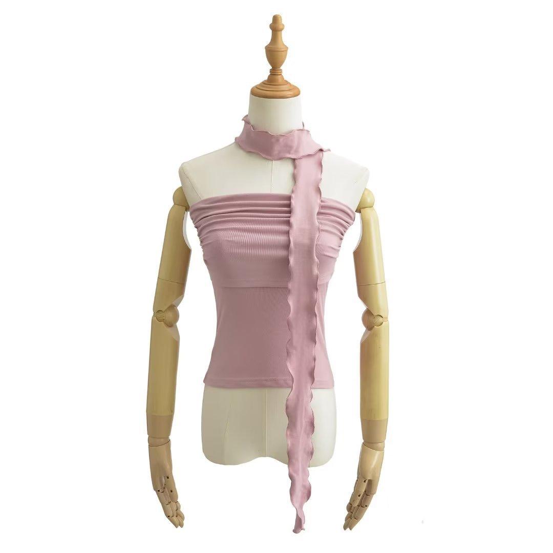 Otoño 2023 nuevo estilo europeo y americano moda color sólido chica americana sexy pecho plisado top tubo + bufanda top básico ajustado