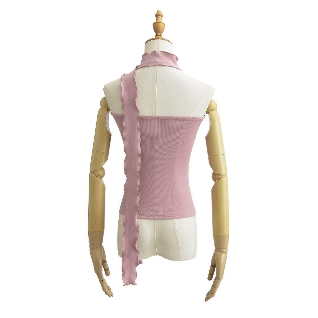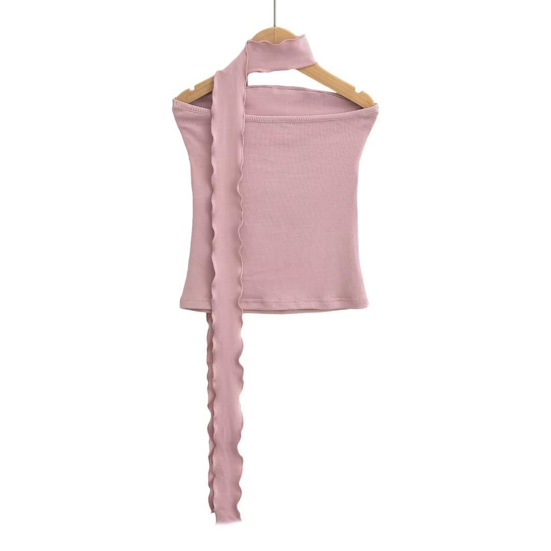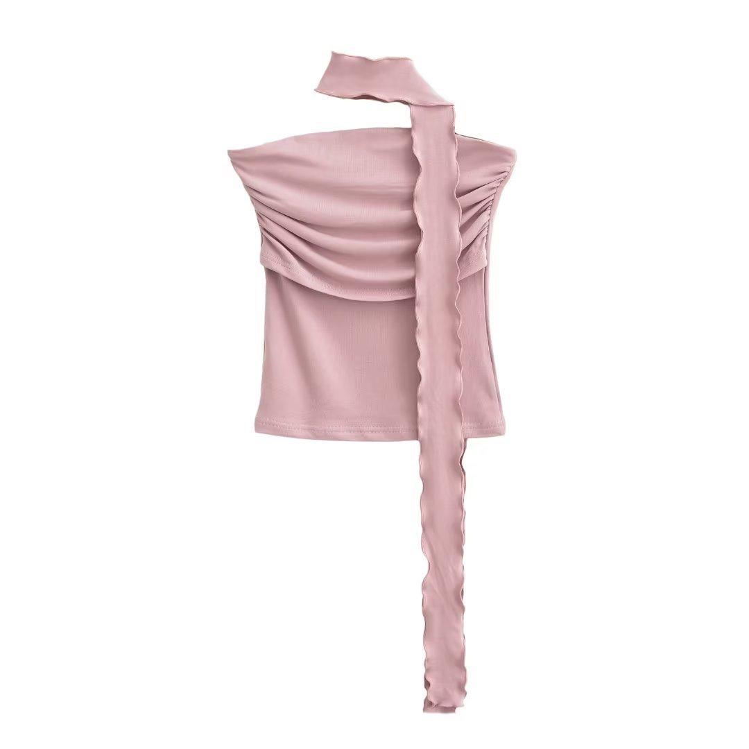 Otoño 2023 nuevo estilo europeo y americano moda color sólido chica americana sexy pecho plisado top tubo + bufanda top básico ajustado