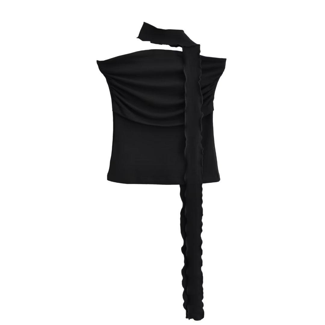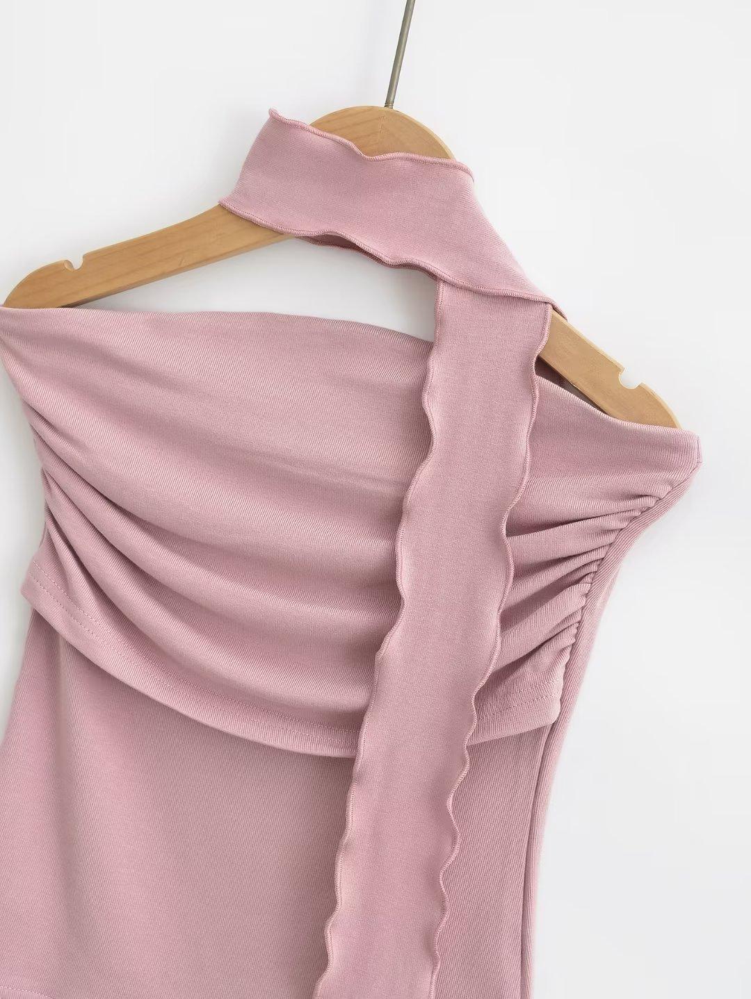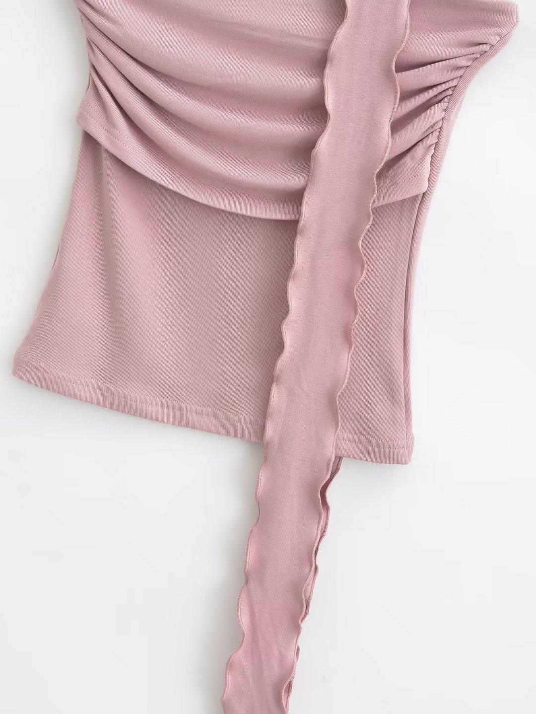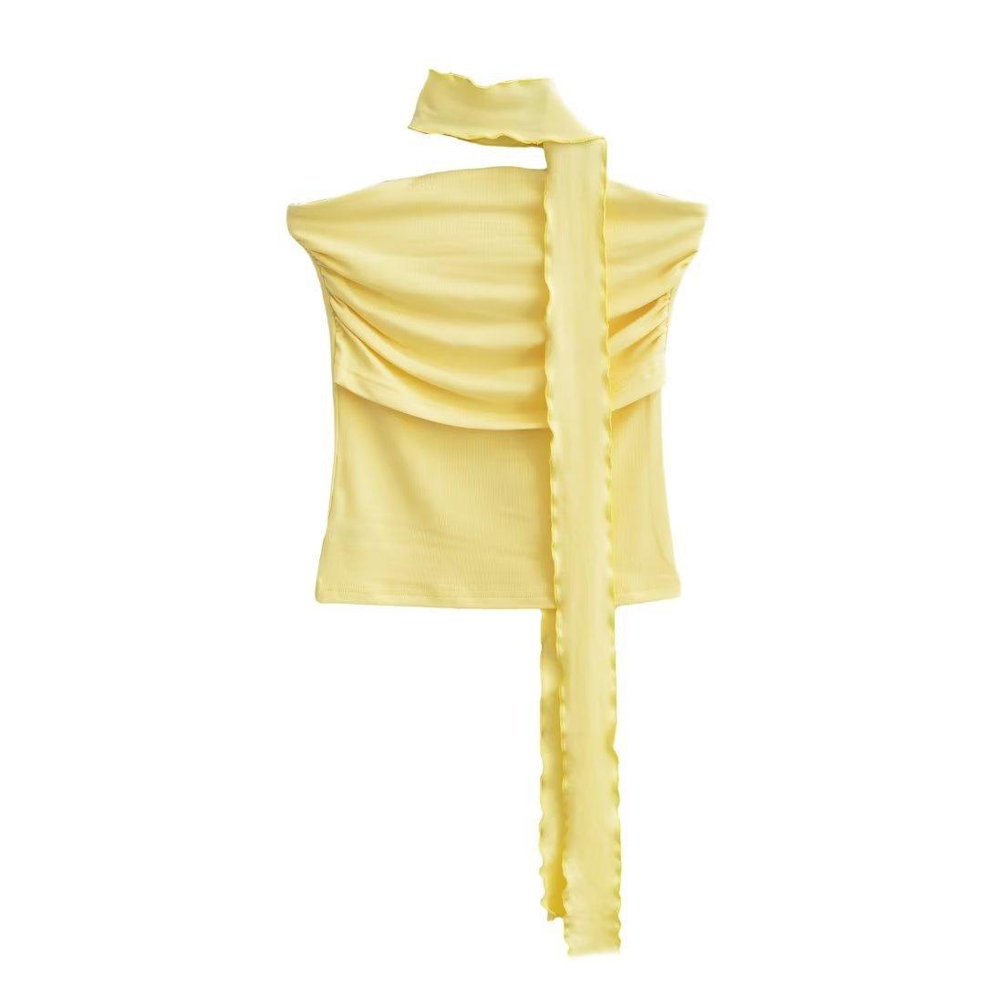 Otoño 2023 nuevo estilo europeo y americano moda color sólido chica americana sexy pecho plisado top tubo + bufanda top básico ajustado