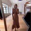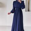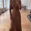 Otoño 2024 Nuevo Vestido A Línea A de Manga Larga con Cuello Redondo y Cintura Plisada de Color Sólido con Transfronterizo Europeo y Americano de Amazon