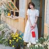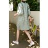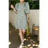 Vestido de Verano Nuevo, Mangas Farol Francesas, Falda Elegante de Hada, Falda Floral Verde, Tendencia Moderna y que Reduce la Edad