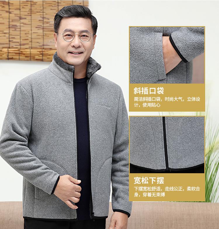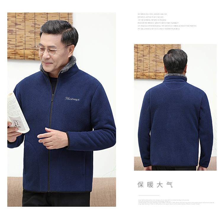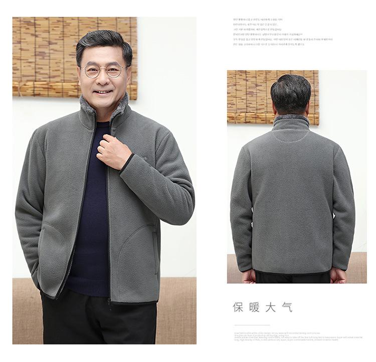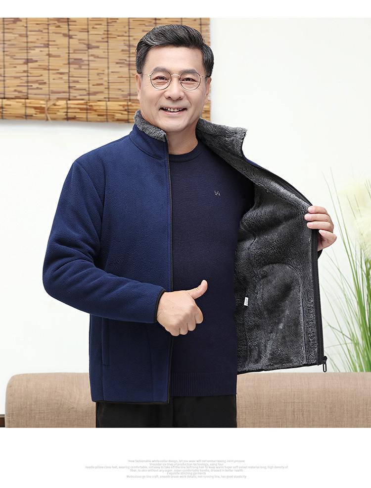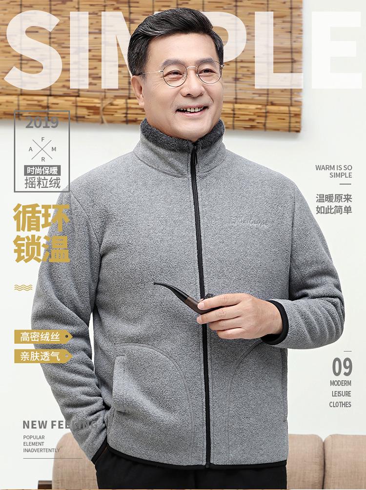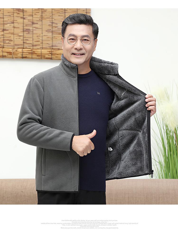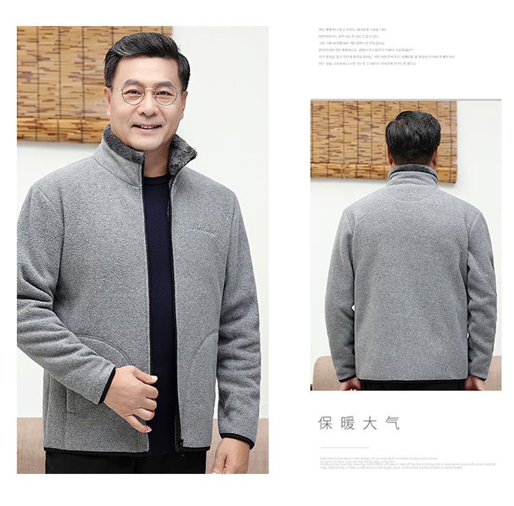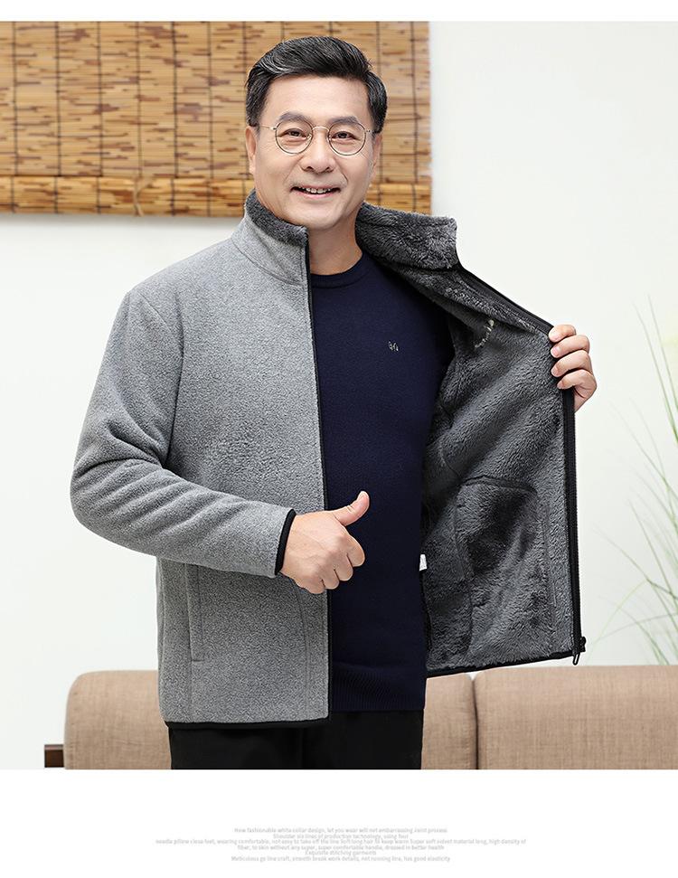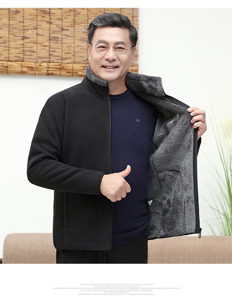 Abrigo polar de otoño e invierno para hombre de mediana edad, cárdigan de talla grande con forro polar y cuello vertical.