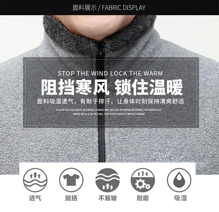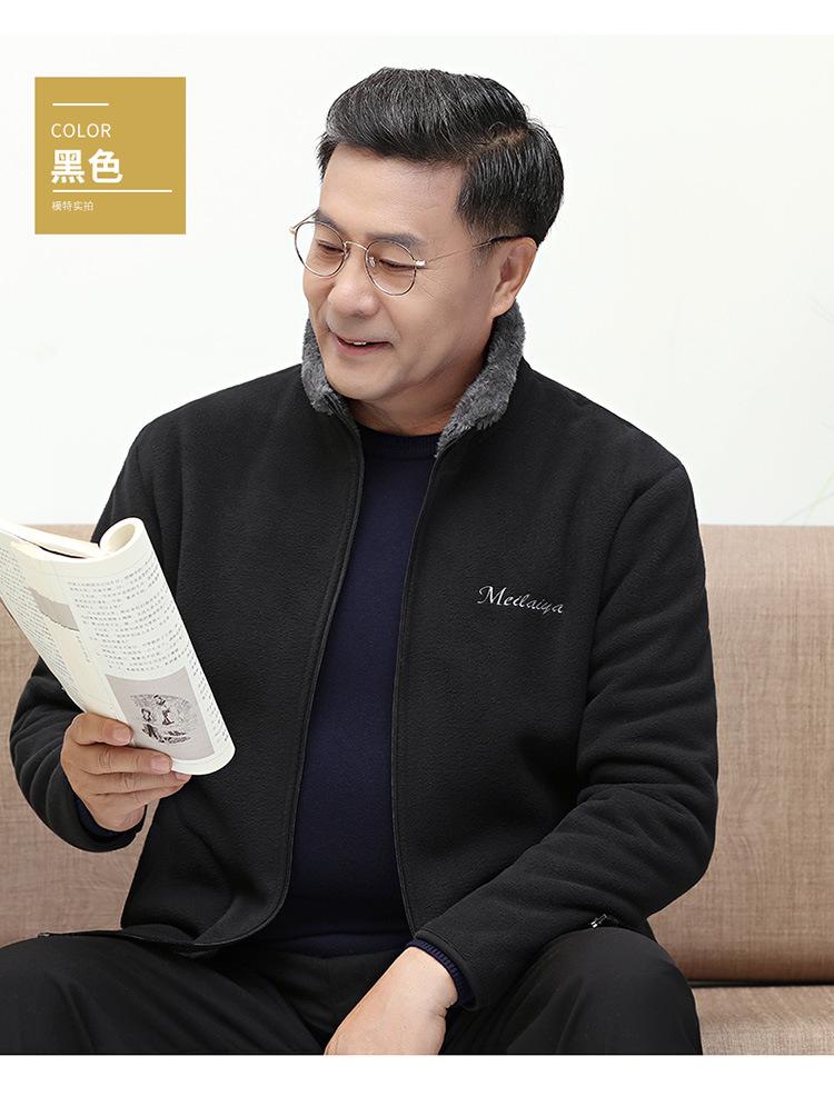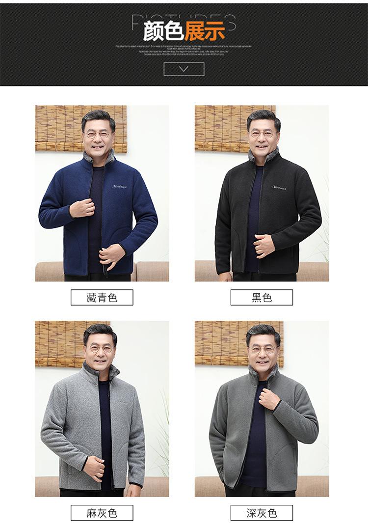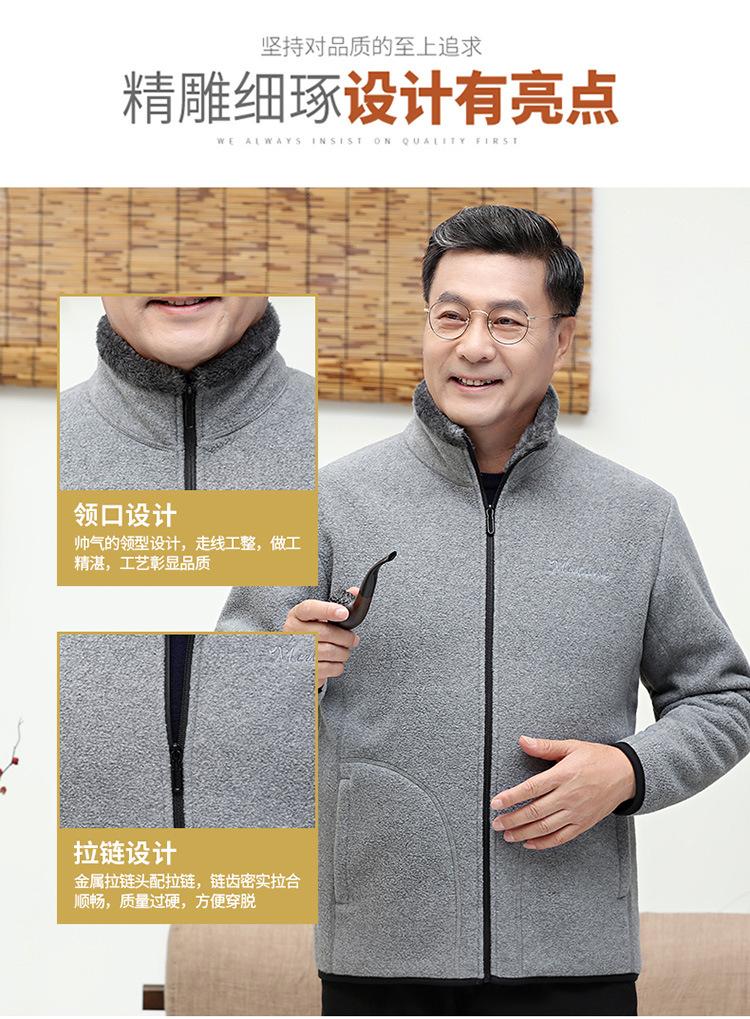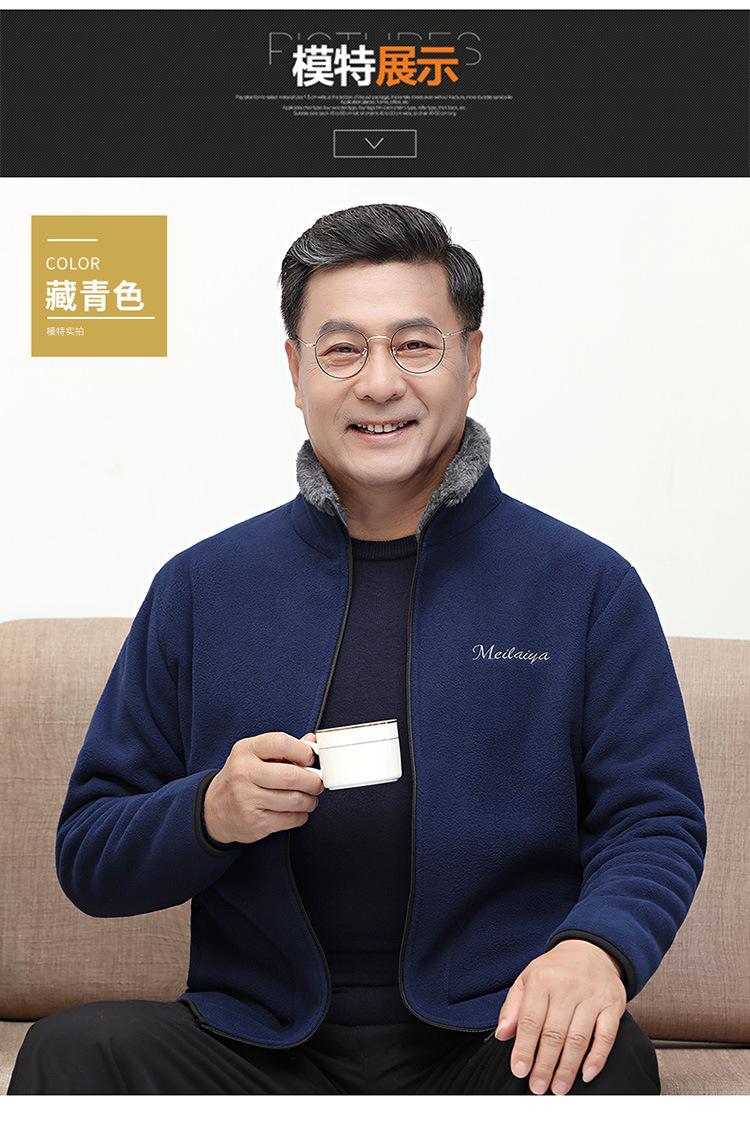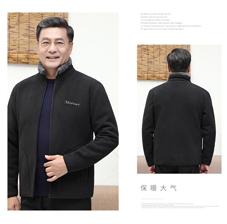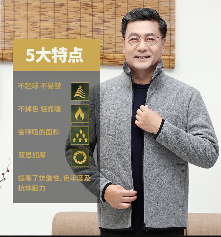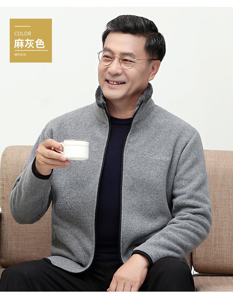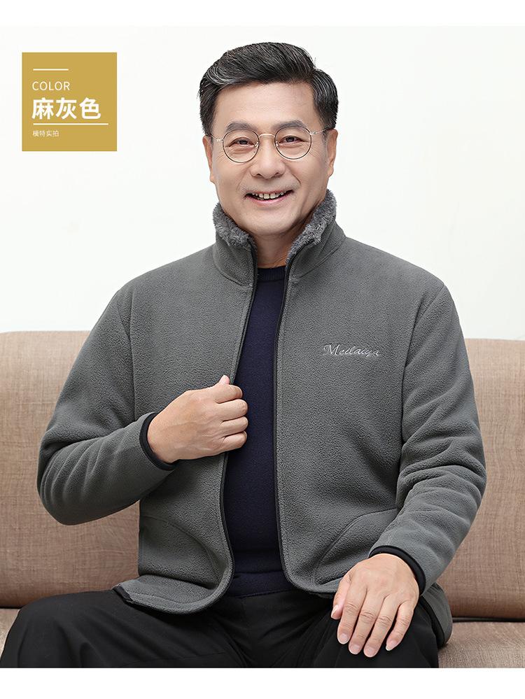 Abrigo polar de otoño e invierno para hombre de mediana edad, cárdigan de talla grande con forro polar y cuello vertical.