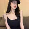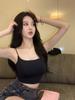 Camisola corta y sexy para chica, ropa de verano para mujer, chaleco negro ajustado, belleza en la espalda, top de fondo estilo europeo y americano