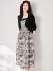 2318411 - Cárdigan de Punto Vintage Otoñal + Vestido con Tirantes Conjunto de Dos Piezas Atuendo Elegante