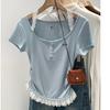 Camisola de encaje Spice Girl para mujer, estilo europeo y americano, de verano, corte entallado, C77937
