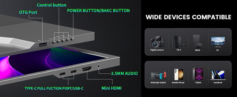 Pantalla Portátil 18.5 pulgadas HD 100Hz Teléfono Móvil Notebook Ps5 Switch Host Pantalla Secundaria Externa