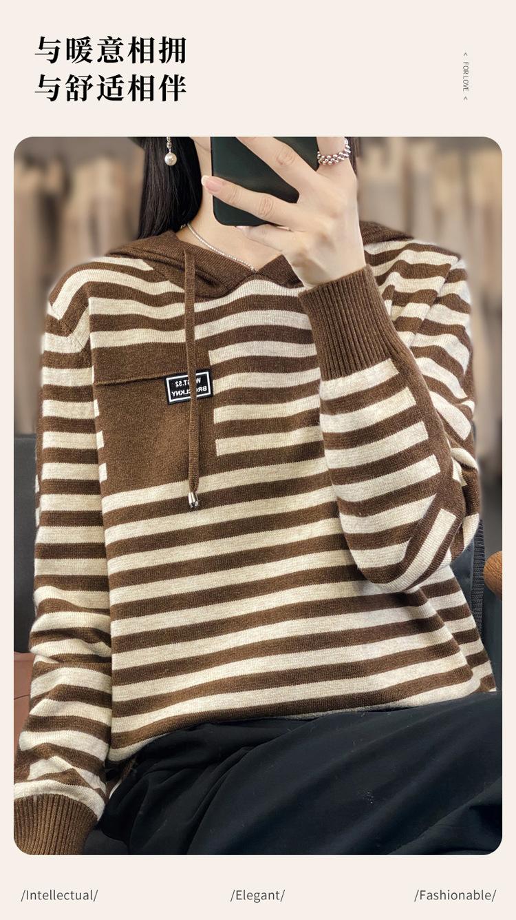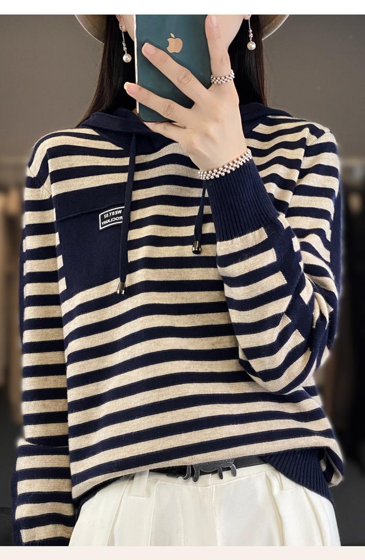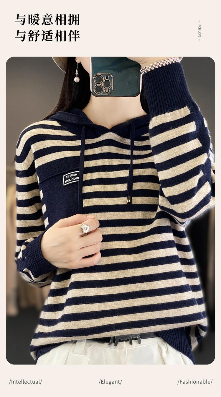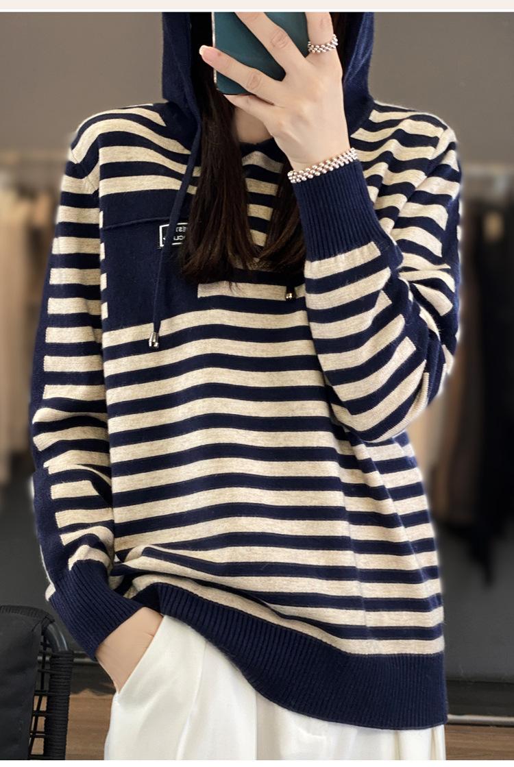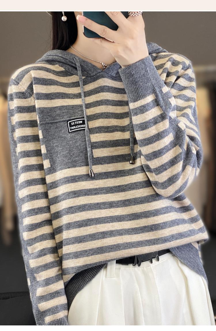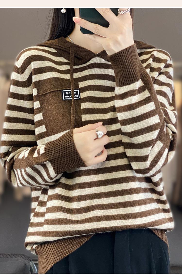 Suéter con capucha informal a rayas de color a juego para mujer, otoño 2023, nuevo suéter con capucha de estilo coreano de moda de estilo occidental para mujer