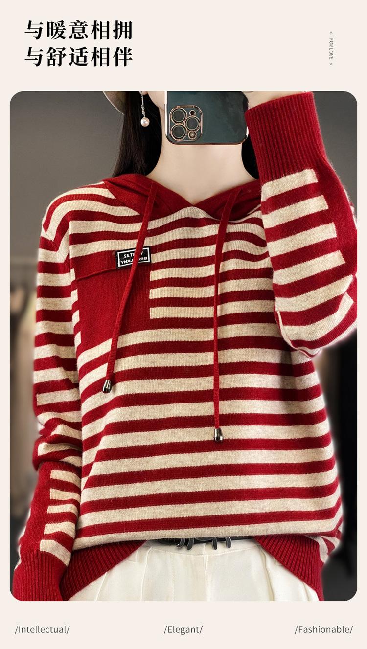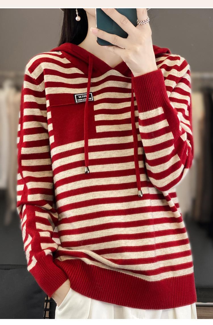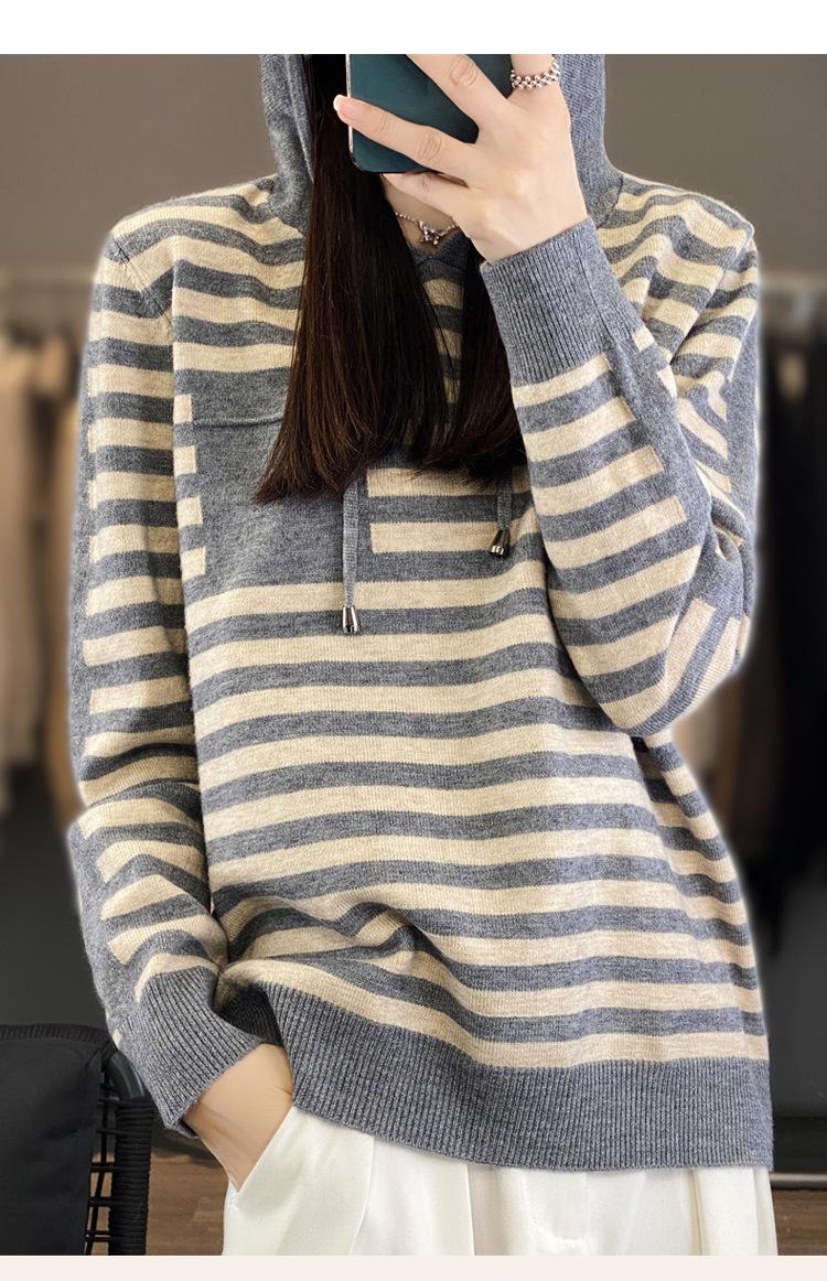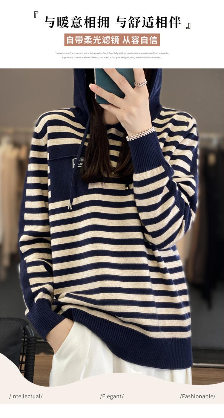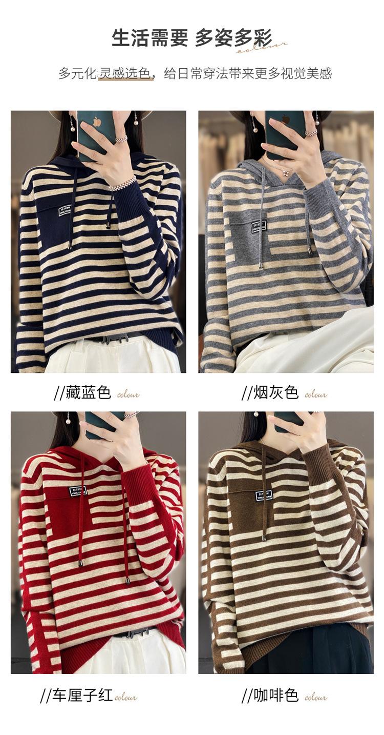 Suéter con capucha informal a rayas de color a juego para mujer, otoño 2023, nuevo suéter con capucha de estilo coreano de moda de estilo occidental para mujer