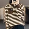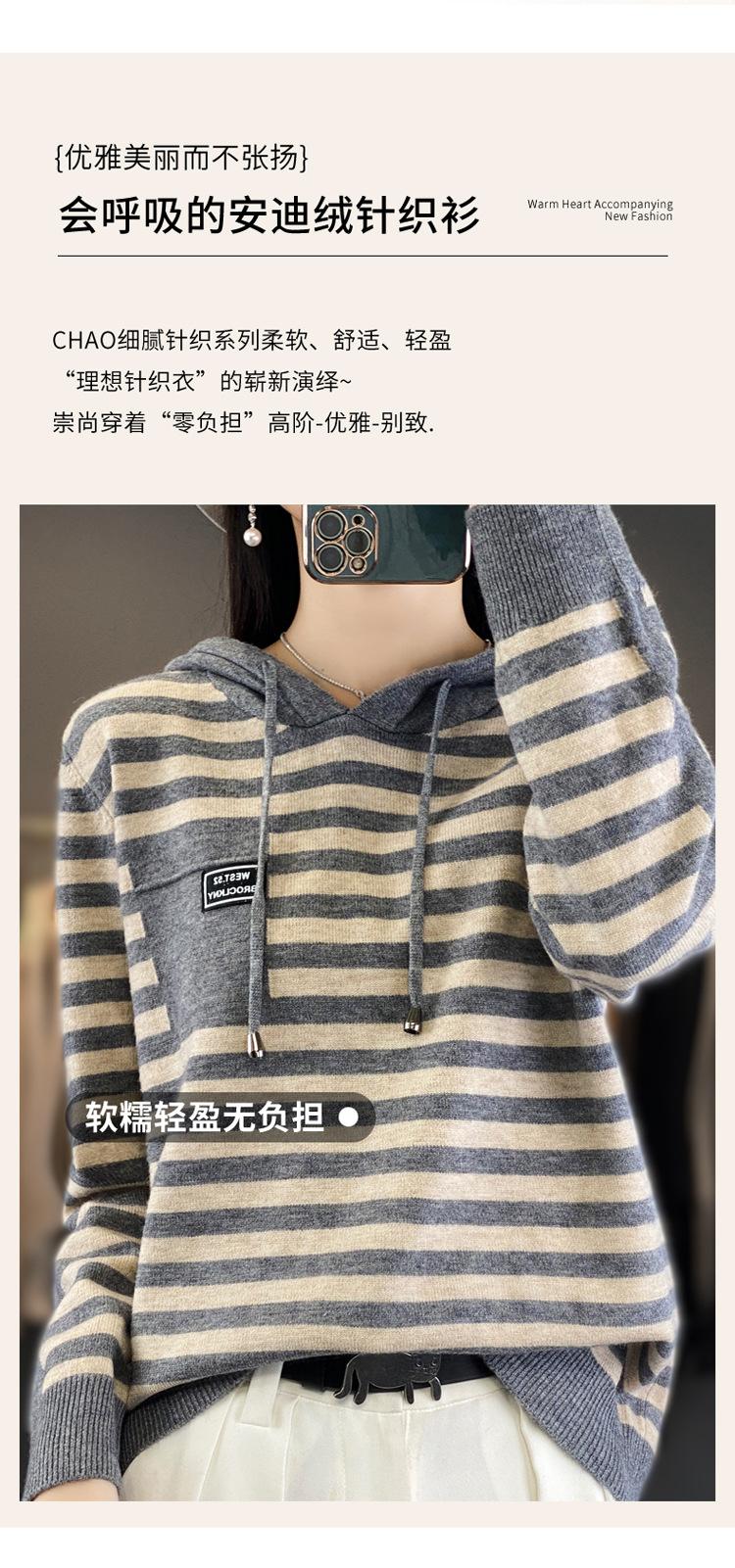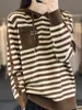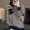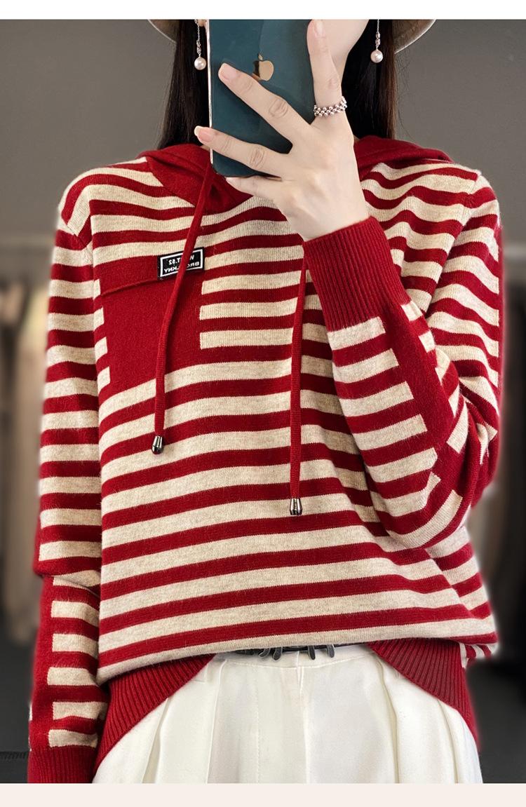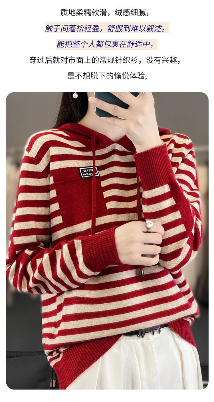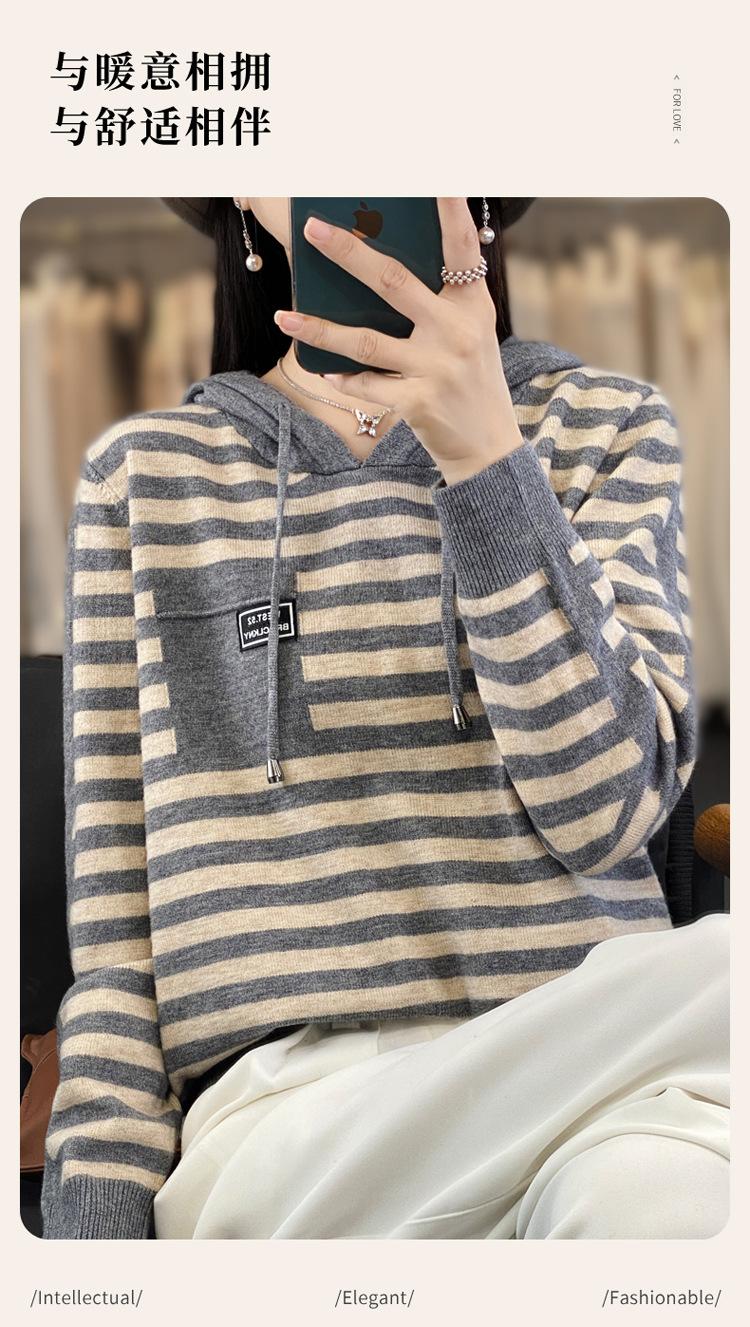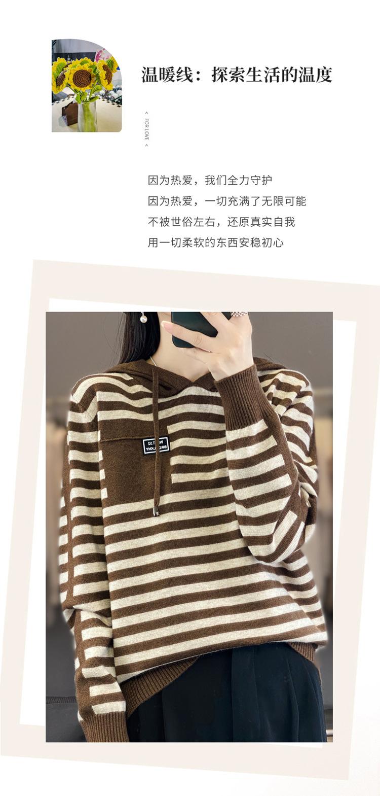 Suéter con capucha informal a rayas de color a juego para mujer, otoño 2023, nuevo suéter con capucha de estilo coreano de moda de estilo occidental para mujer