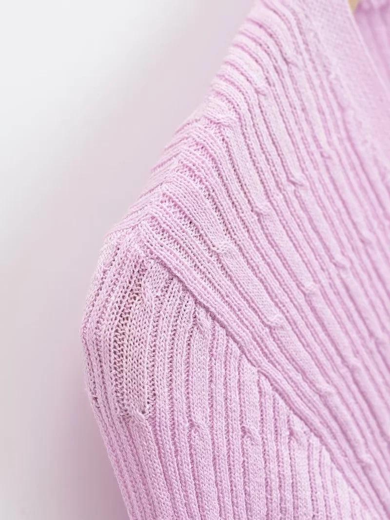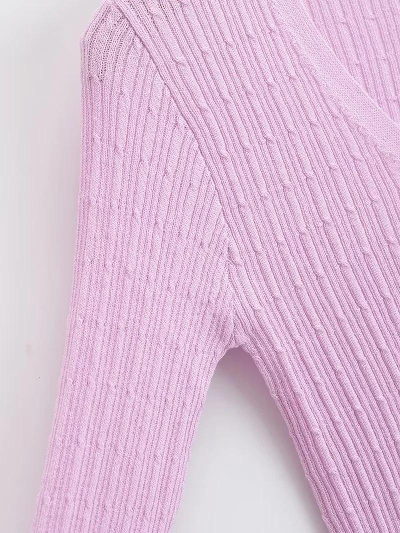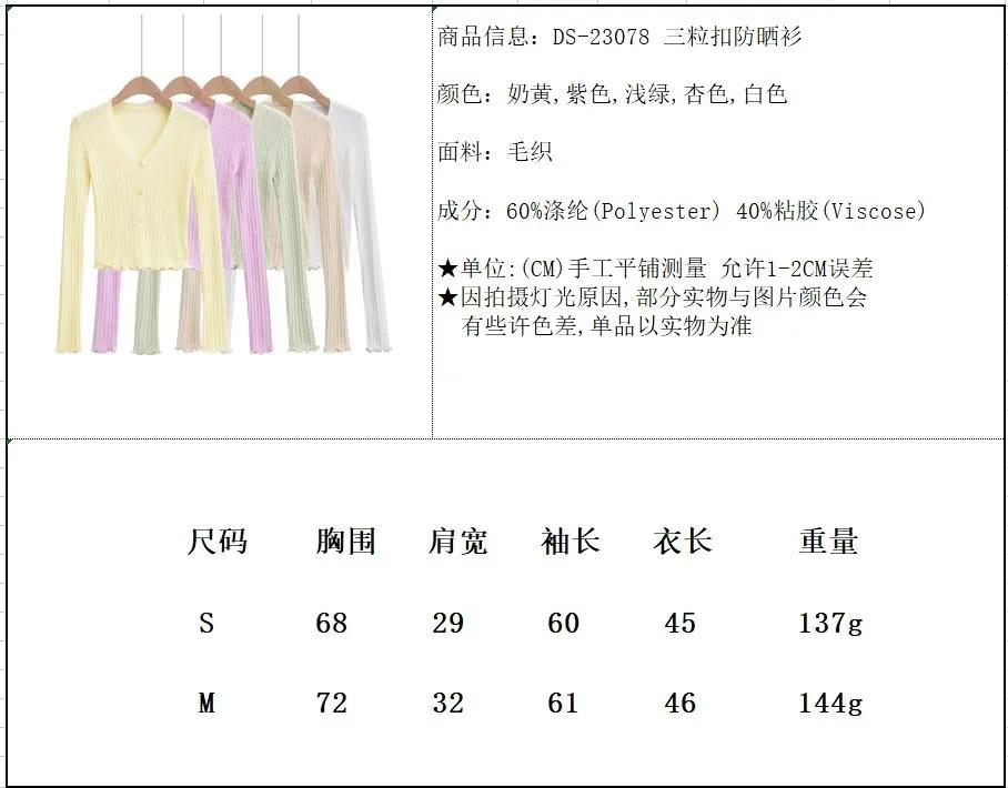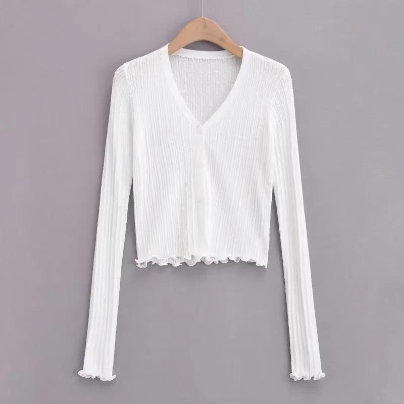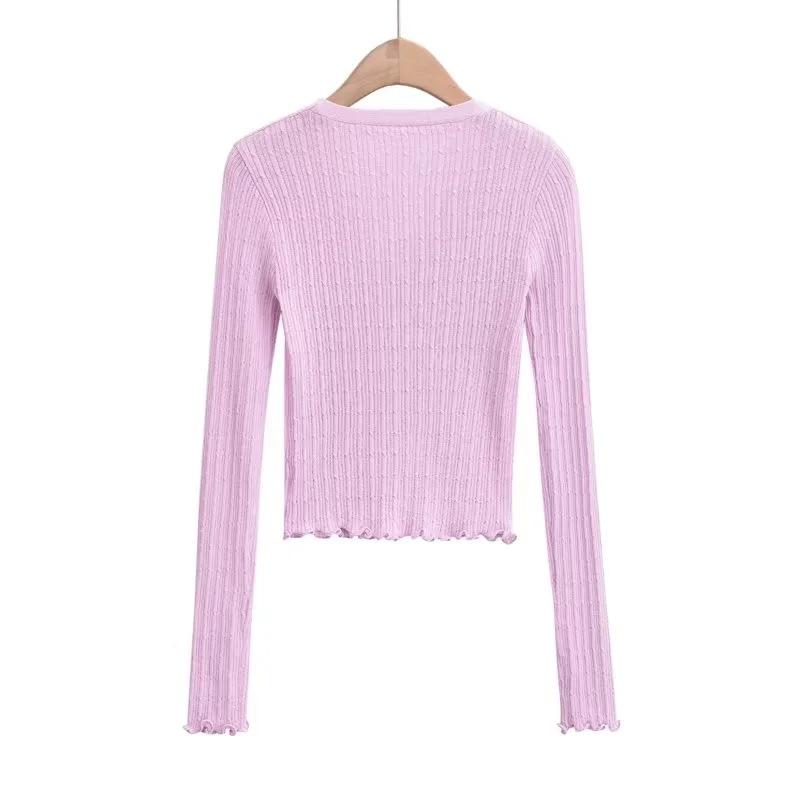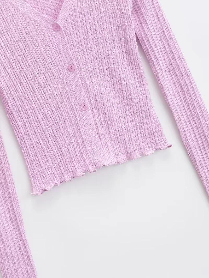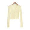 Cárdigan Top Tejido de Tres Botones Color Caramelo Ins para Mujer, Nuevo Verano Cuello en V Acanalado Ajustado Ligero Manga Larga