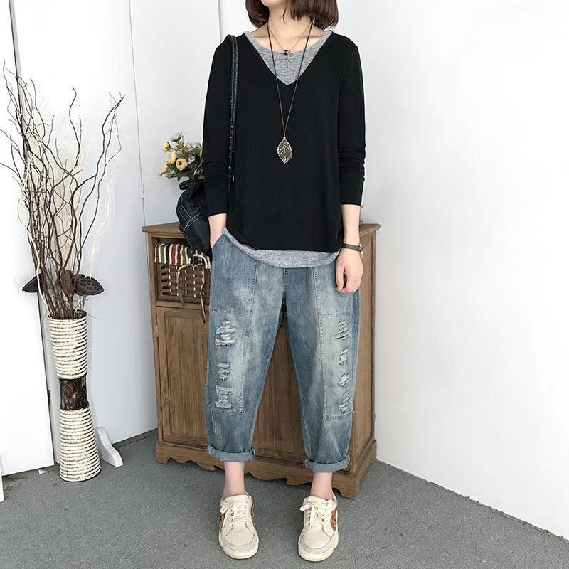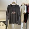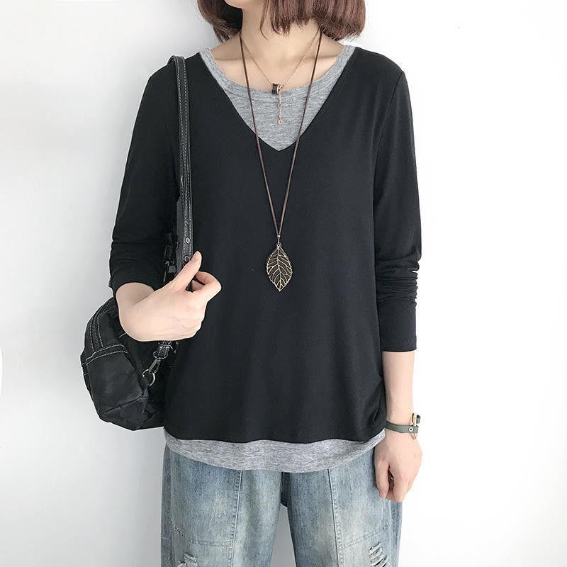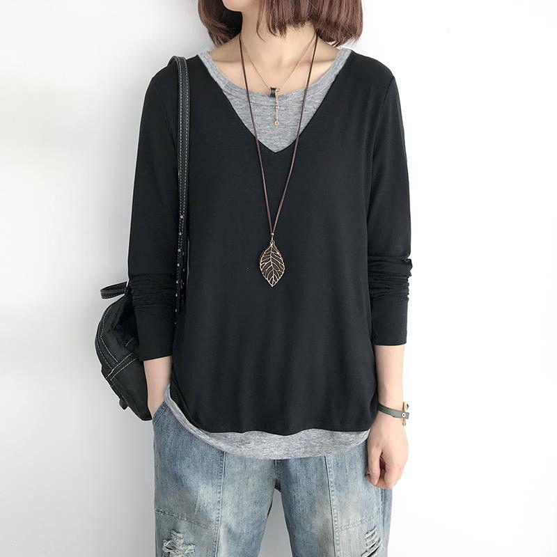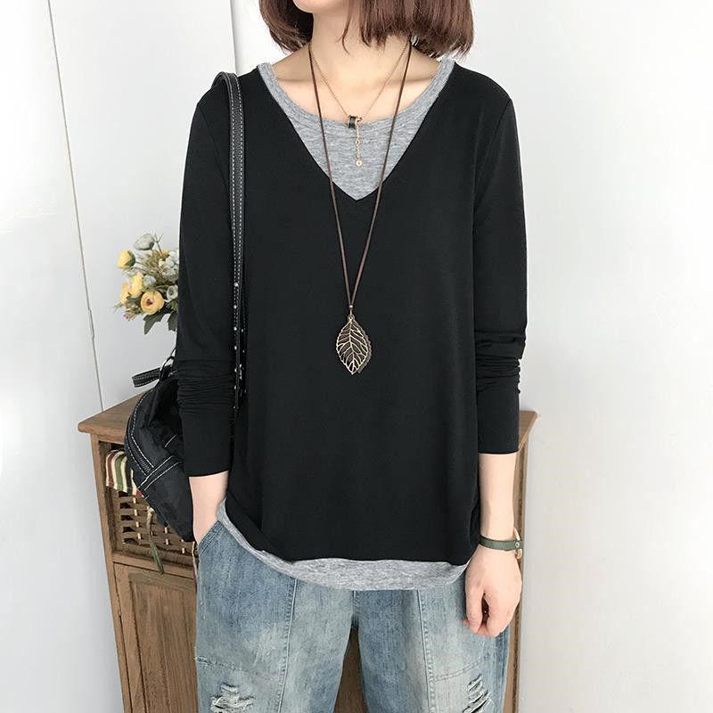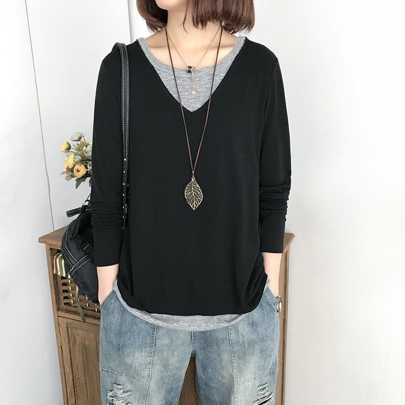Camiseta de Manga Larga para Primavera 2025 para Mujer Otoño Empalmada Conjunto Falso de Dos Piezas Nuevo Estilo Coreano Holgada Versátil Top Camiseta Básica