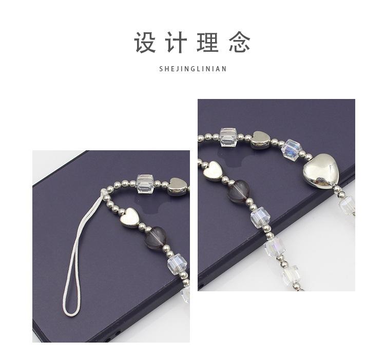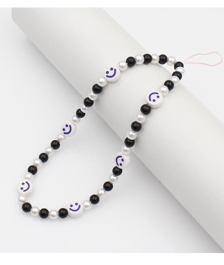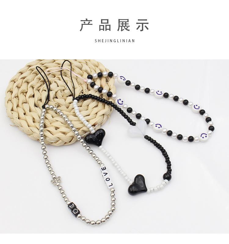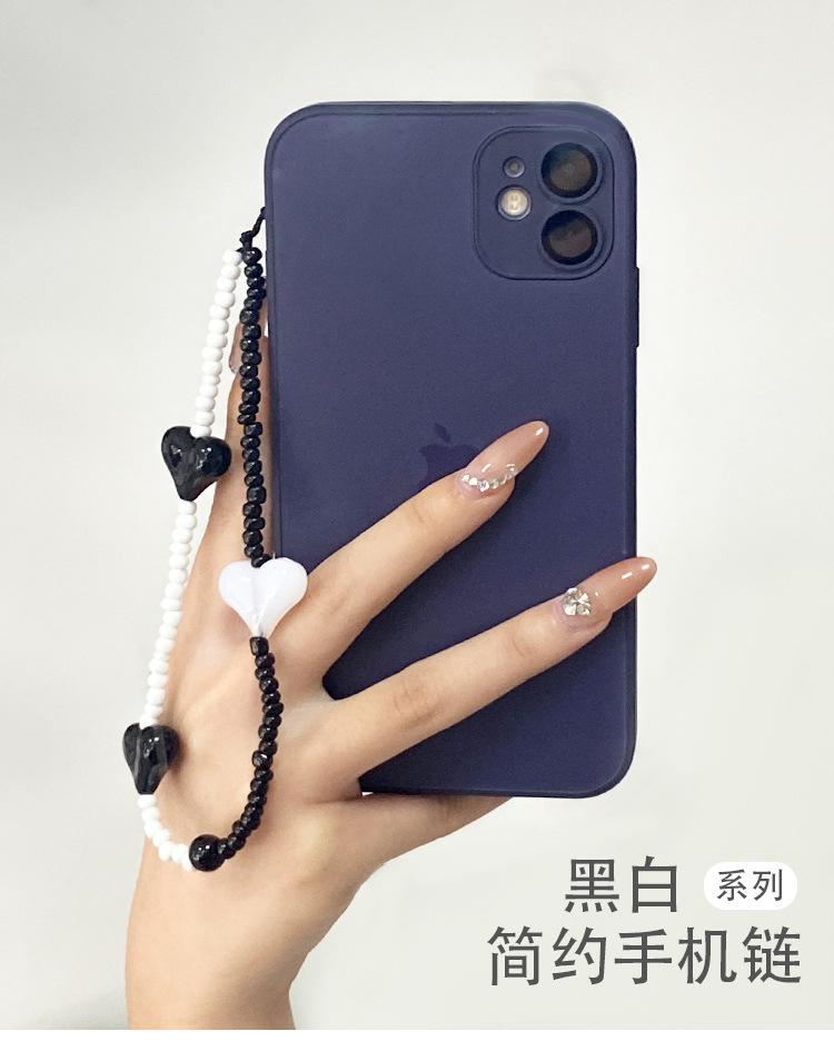 Cadena para teléfono móvil estilo Ins con cuentas, antipérdida, cuerda para teléfono móvil, blanco y negro, sencilla, con personalidad para chica, funda corta para teléfono móvil, colgante, joyería