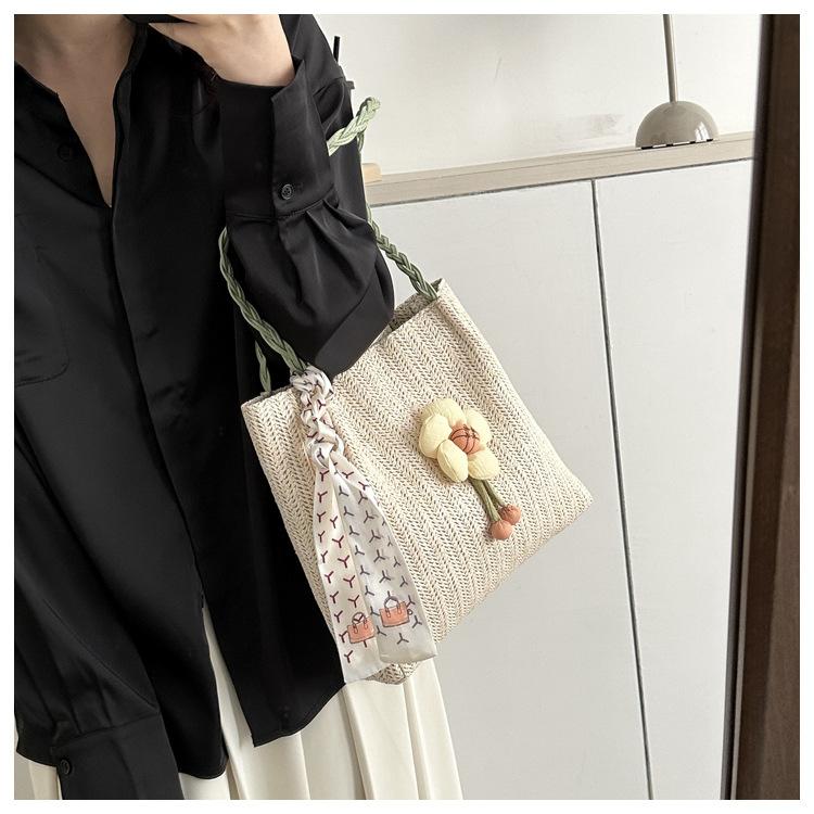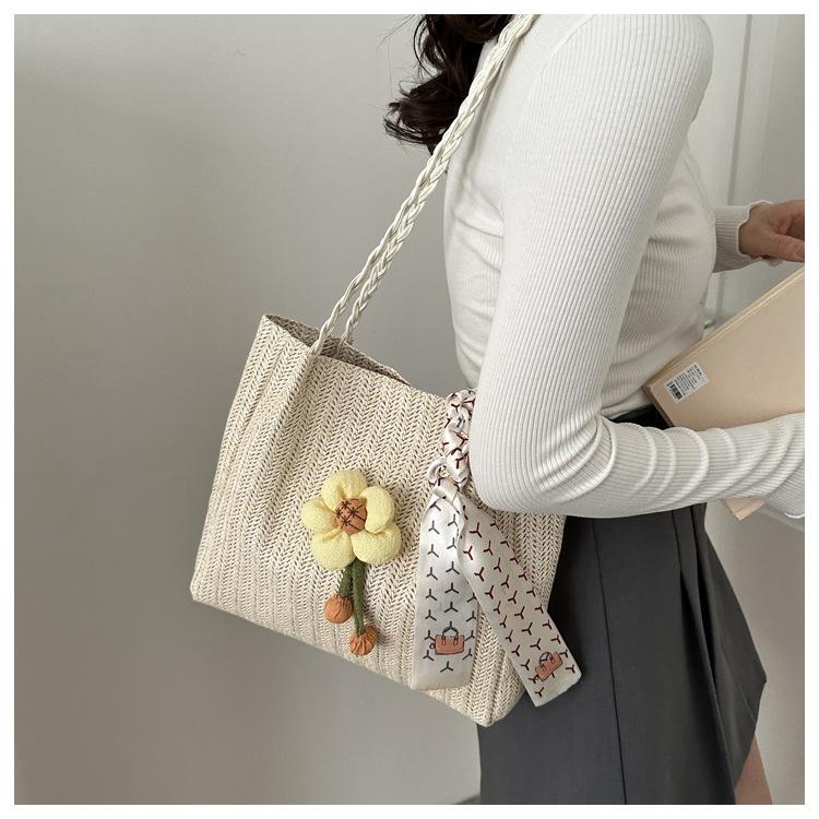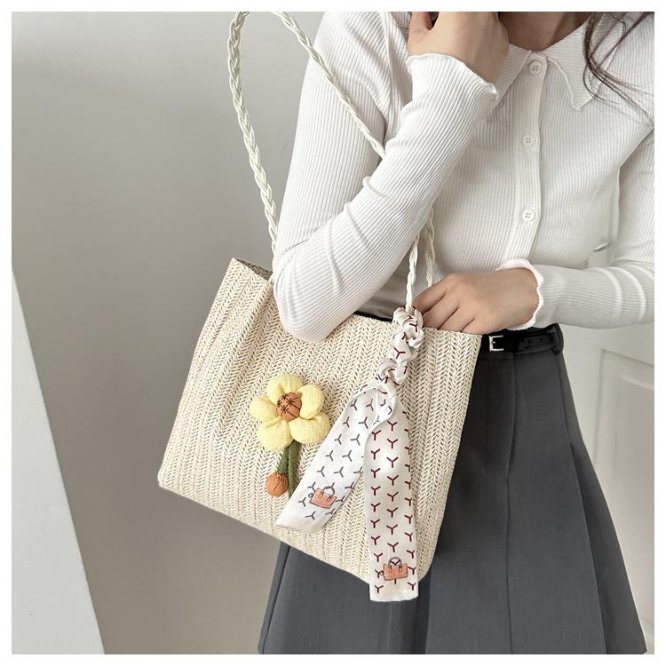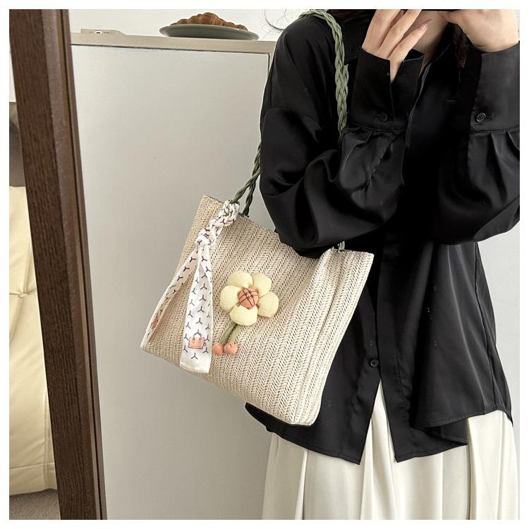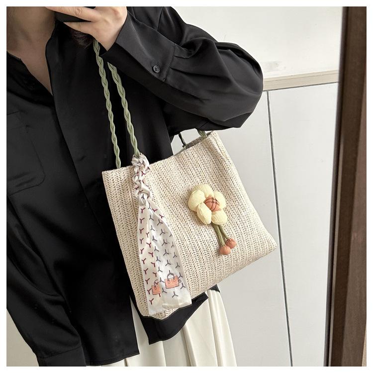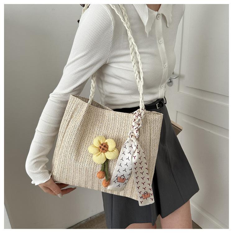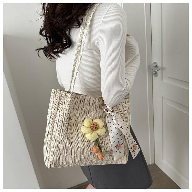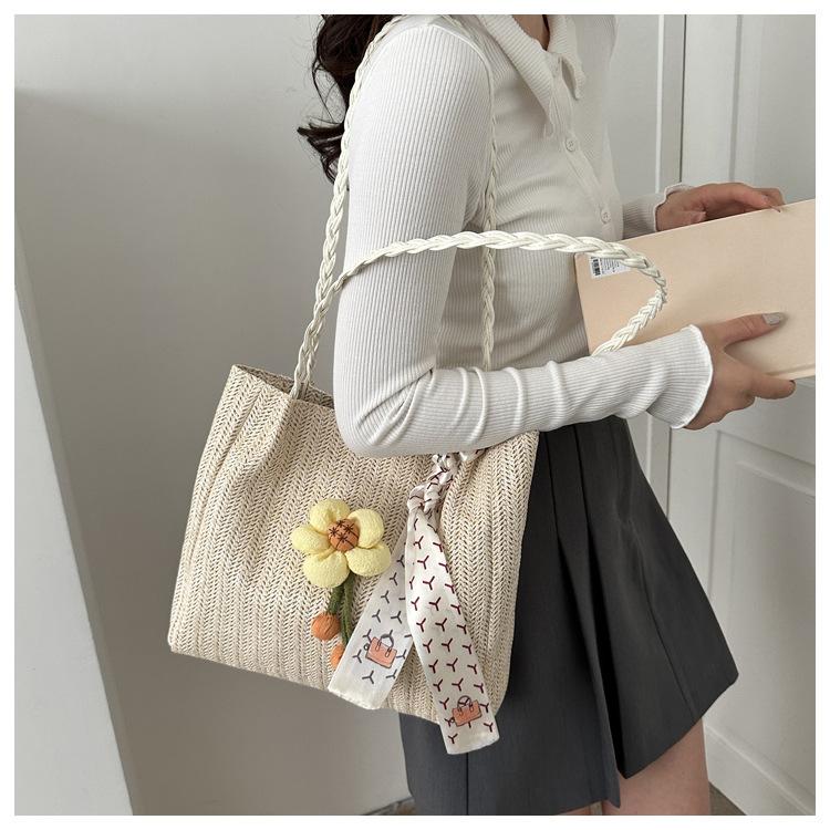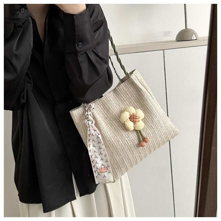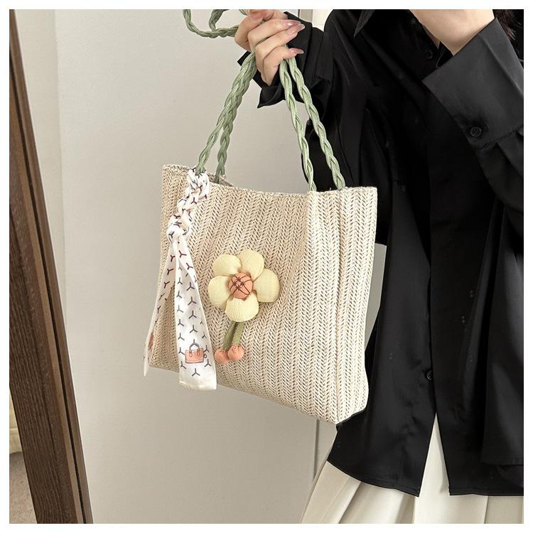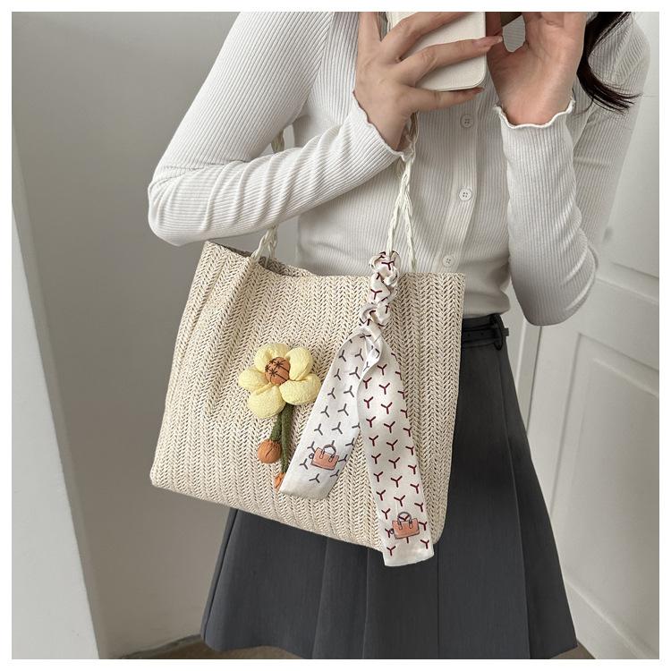 Bolso de paja estilo Mori popular de verano, bolso sencillo de gran capacidad para mujer, bolso de mano para vacaciones en la playa, bolso tejido para mujer