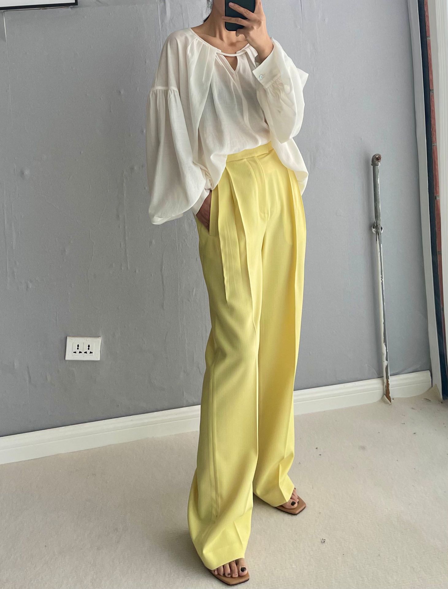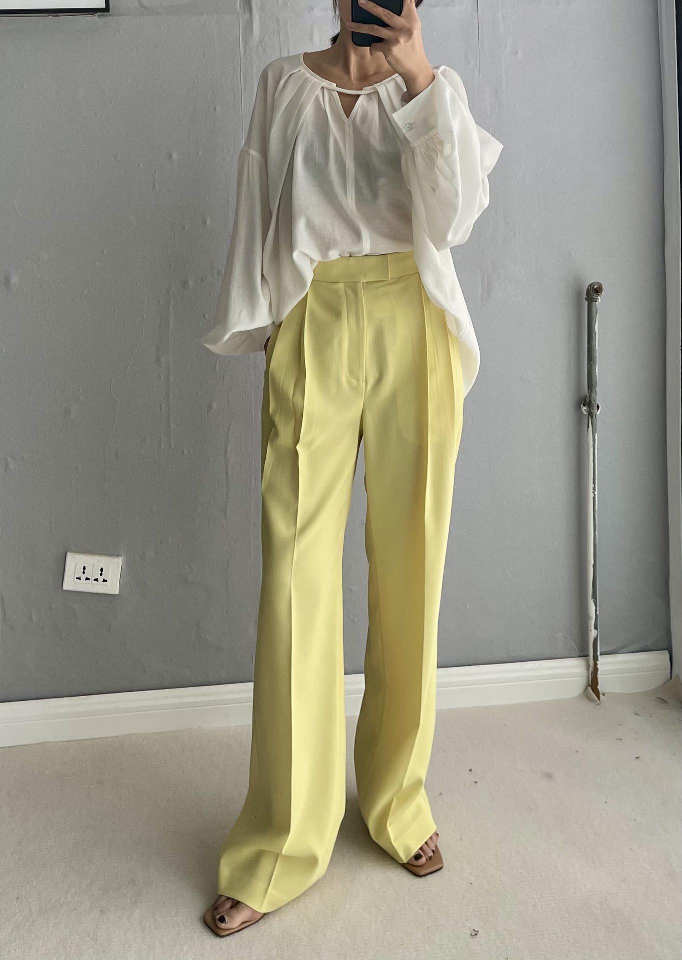 THR * Pantalones de traje W para mujer primavera y otoño 2023 nuevos pantalones de talla delgada pantalones de piso casuales altos