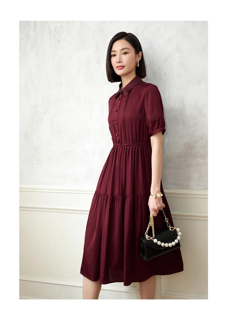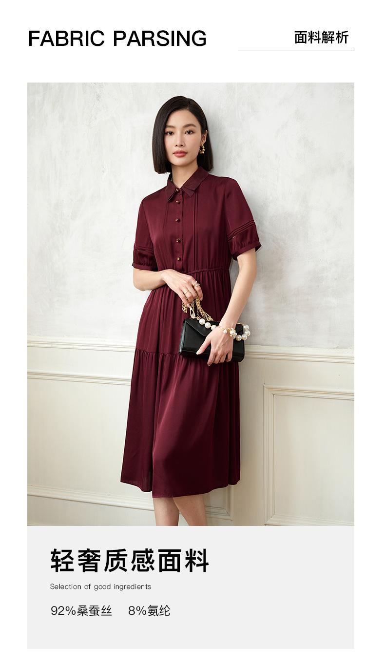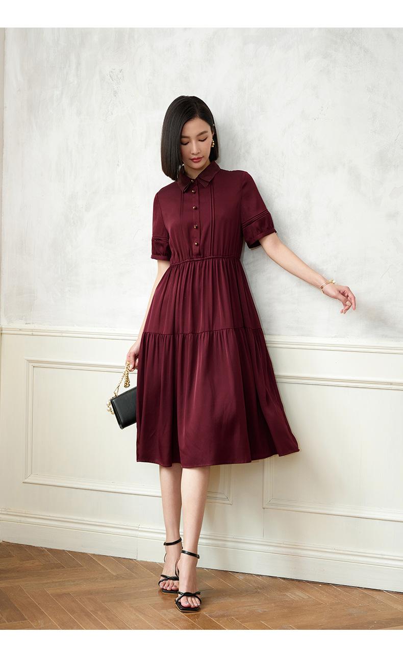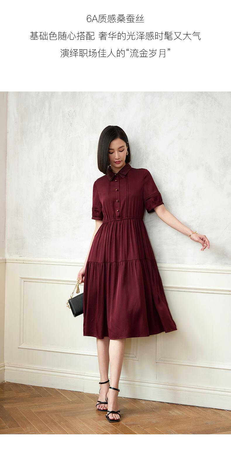 24 Verano Nuevo Vestido de Seda Pesada Diseño Elegante para Mujer Elementos de Costura Falda de Seda Morera Antiedad