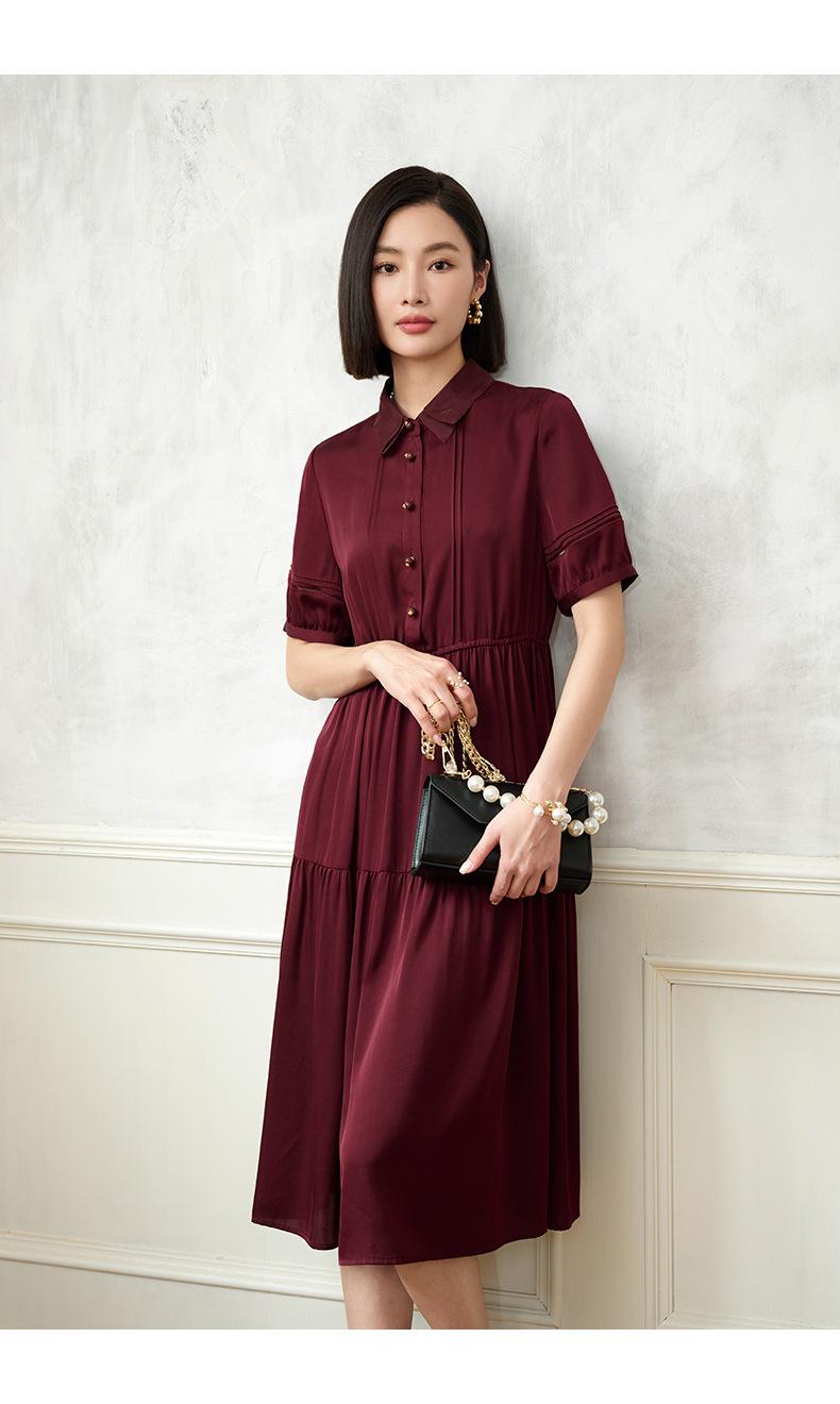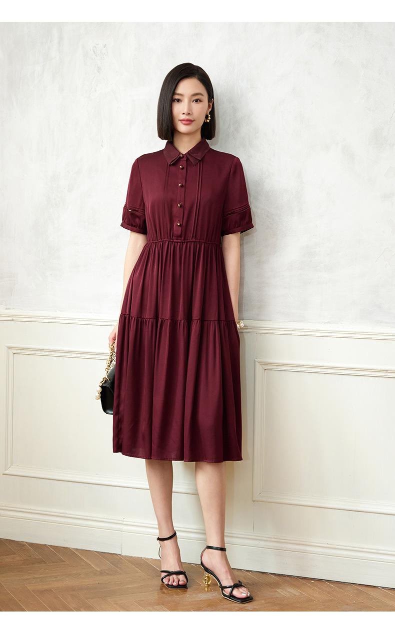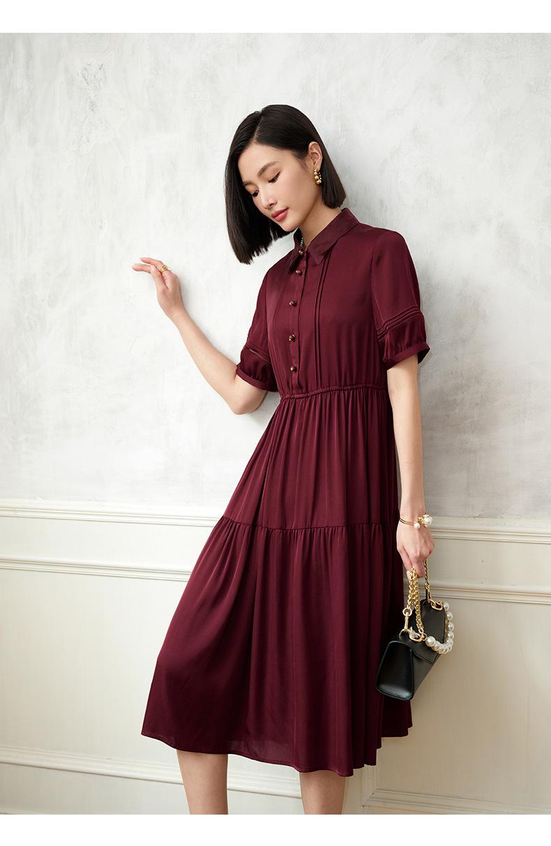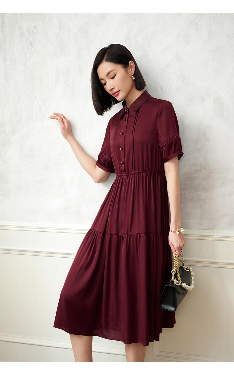 24 Verano Nuevo Vestido de Seda Pesada Diseño Elegante para Mujer Elementos de Costura Falda de Seda Morera Antiedad