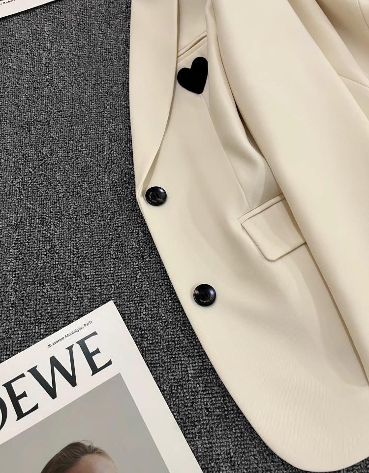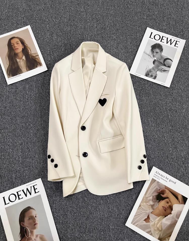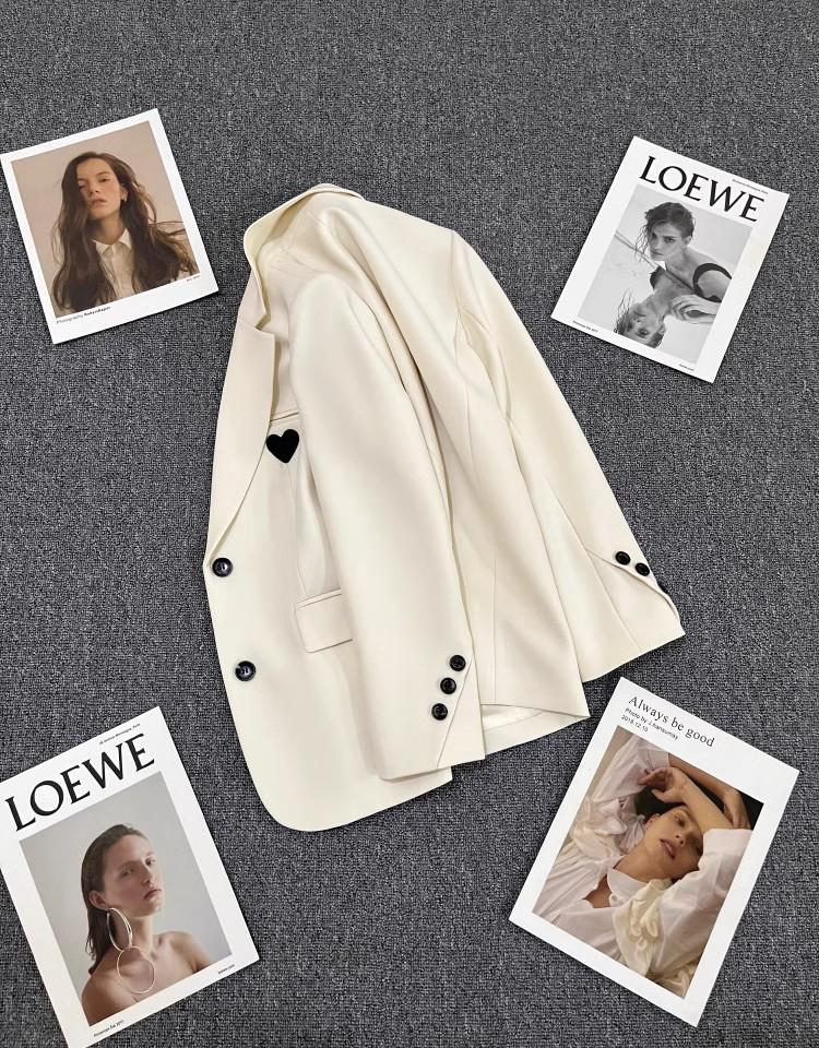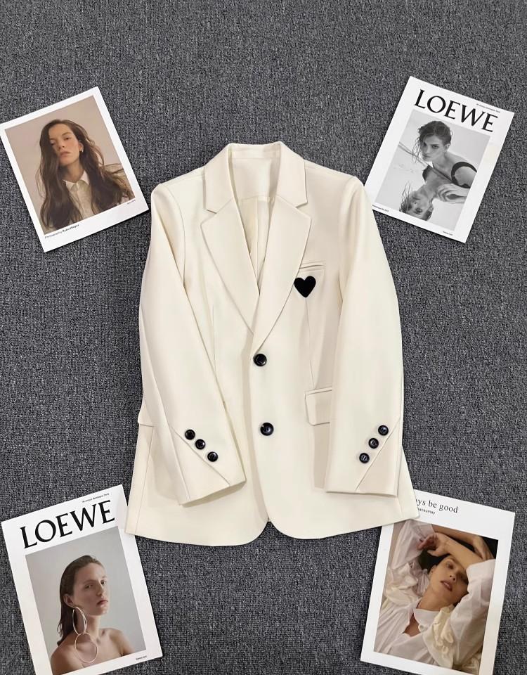 Chaqueta de traje de color blanco cremoso para mujer, primavera y otoño 2024, nuevo diseño, estilo coreano, traje informal de moda urbana frita.