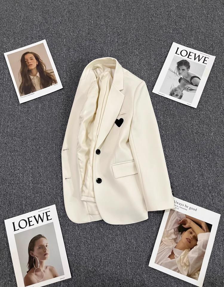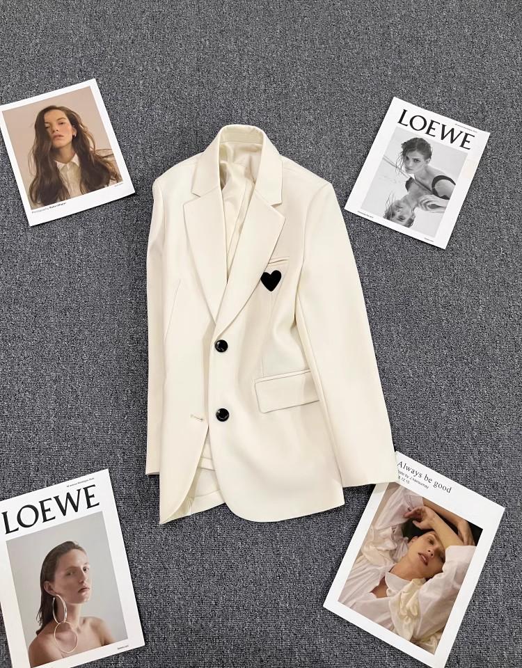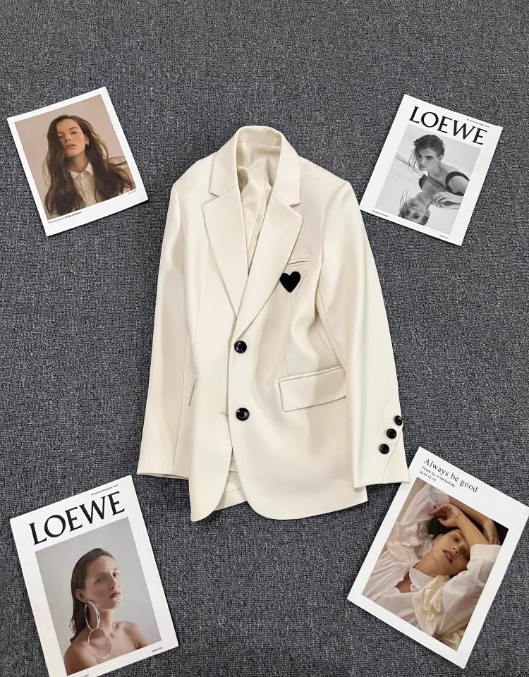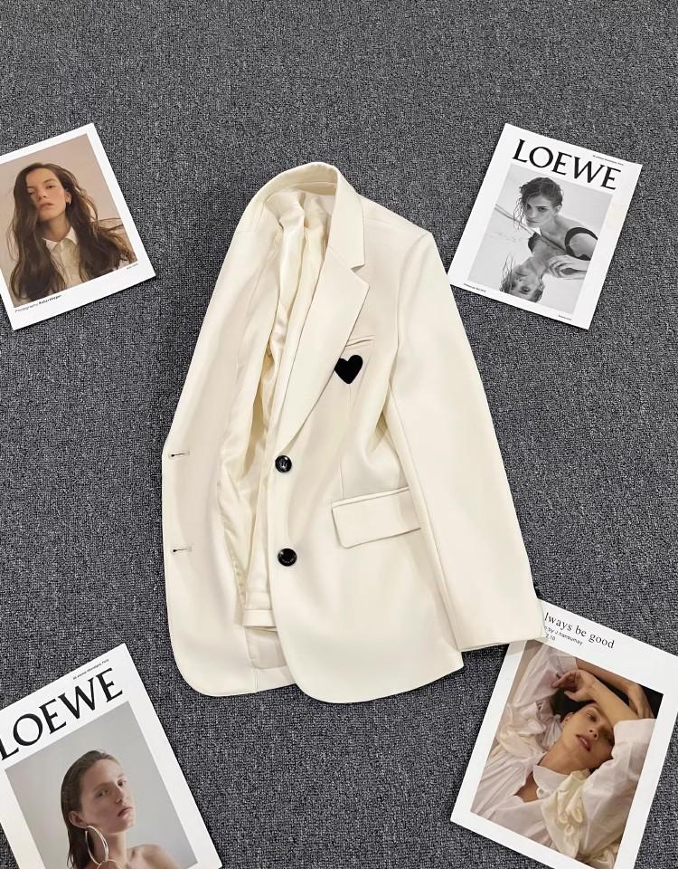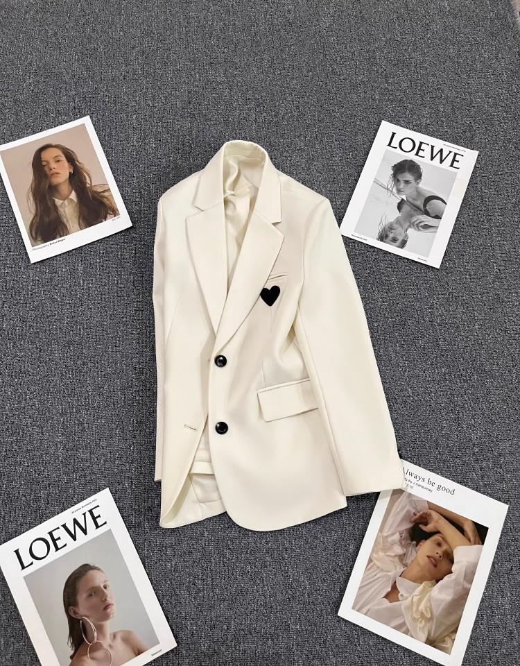 Chaqueta de traje de color blanco cremoso para mujer, primavera y otoño 2024, nuevo diseño, estilo coreano, traje informal de moda urbana frita.