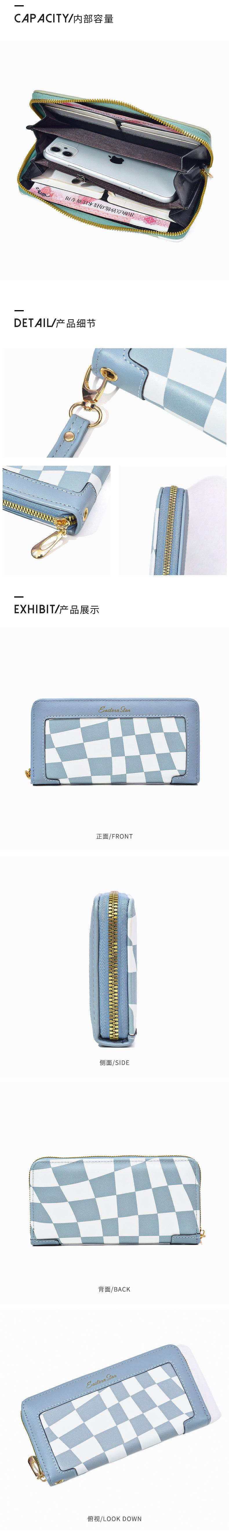 Nueva cartera para mujer, estilo retro europeo y americano, con una sola cremallera, bolso de mano para mujer, bolso largo para teléfono móvil, multifunción, gran capacidad