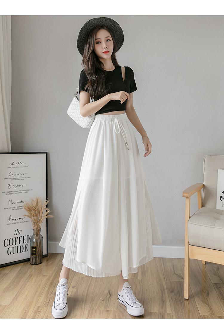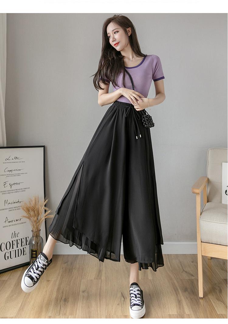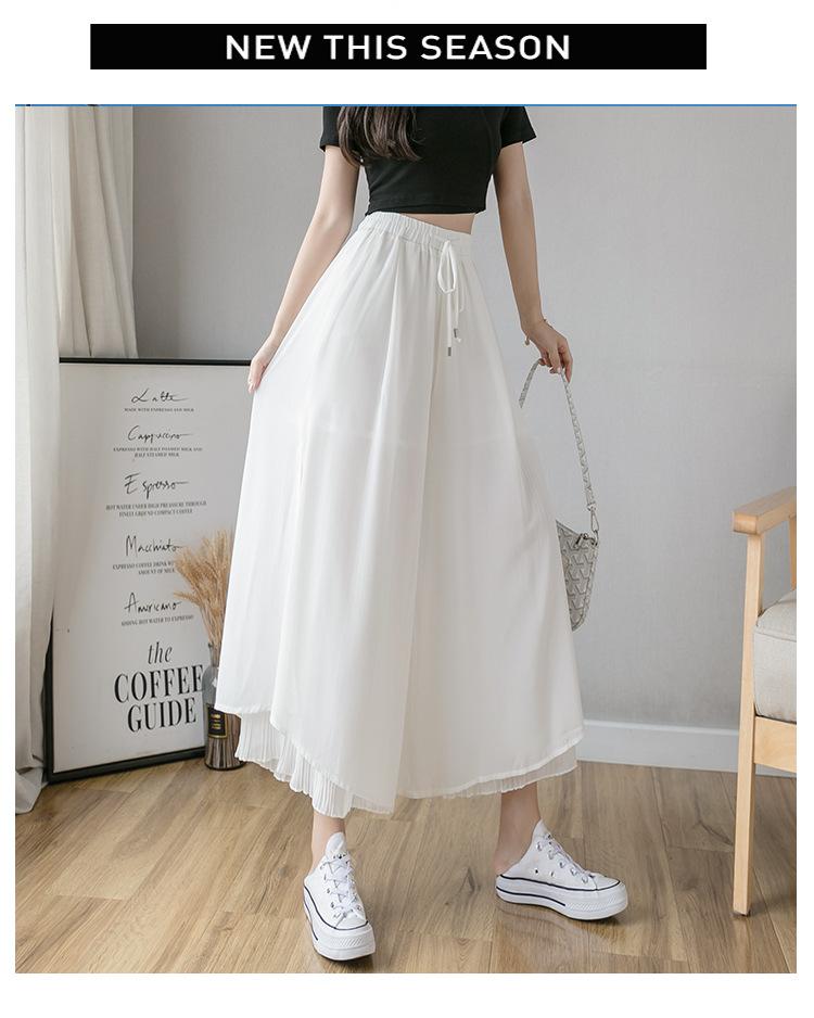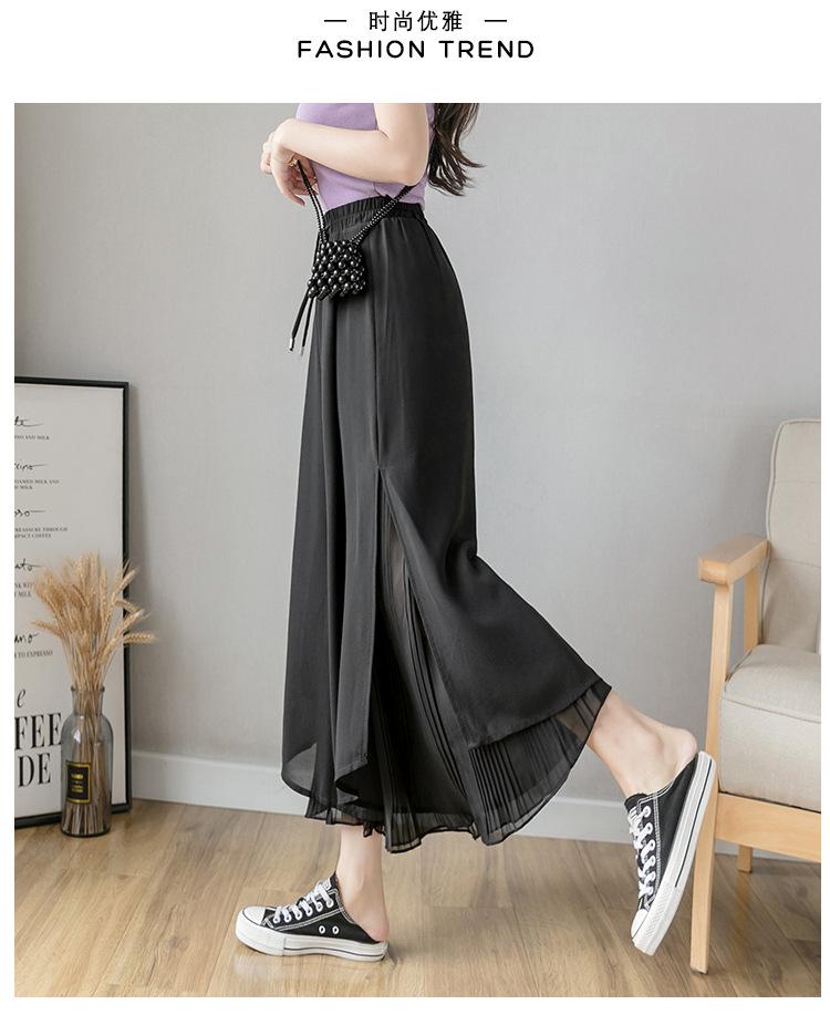 2025 Nuevo Estilo de Verano Pantalones Anchos de Chifón Plisado, Look Adelgazante Moderno Cintura Alta Drapeados Elegantes Culottes de Nueve Puntos para Mujer