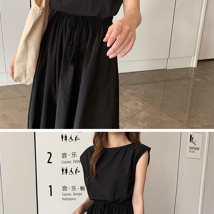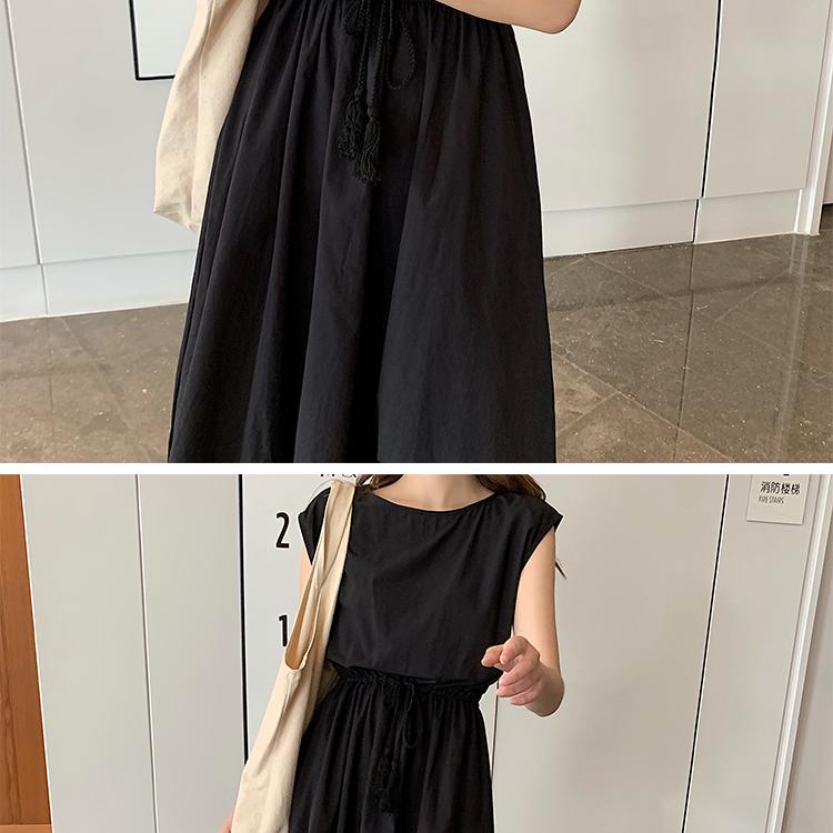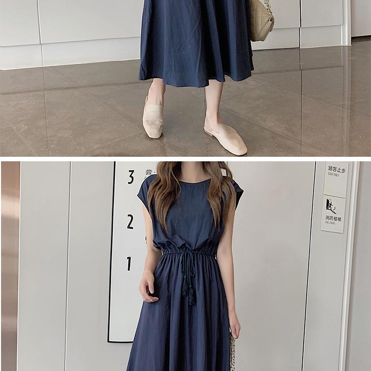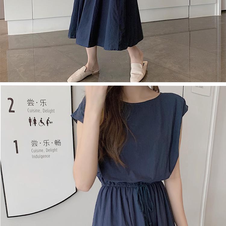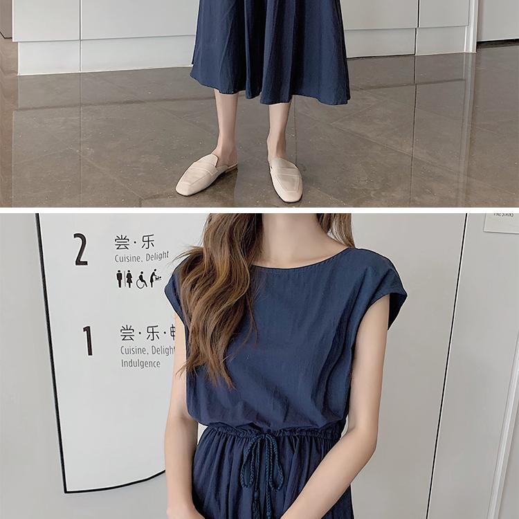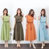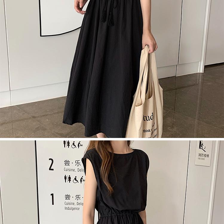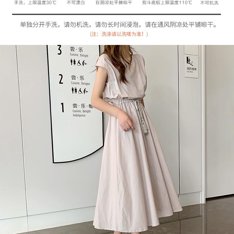 Falda Acampanada Literaria Lotte Verano 2025 Nuevo Estilo Cintura Suelta Talla Grande Algodón y Lino Vestido de Manga Corta para Mujer