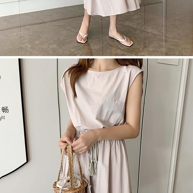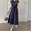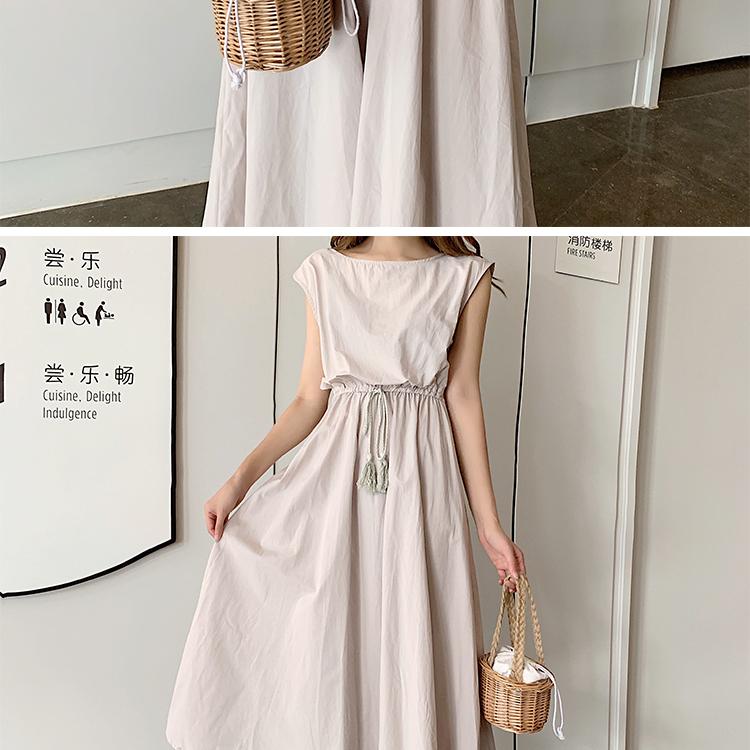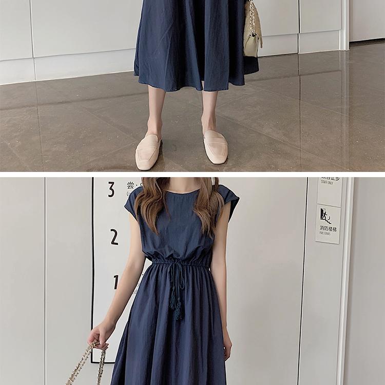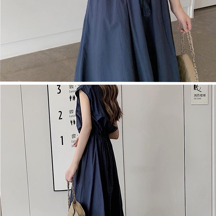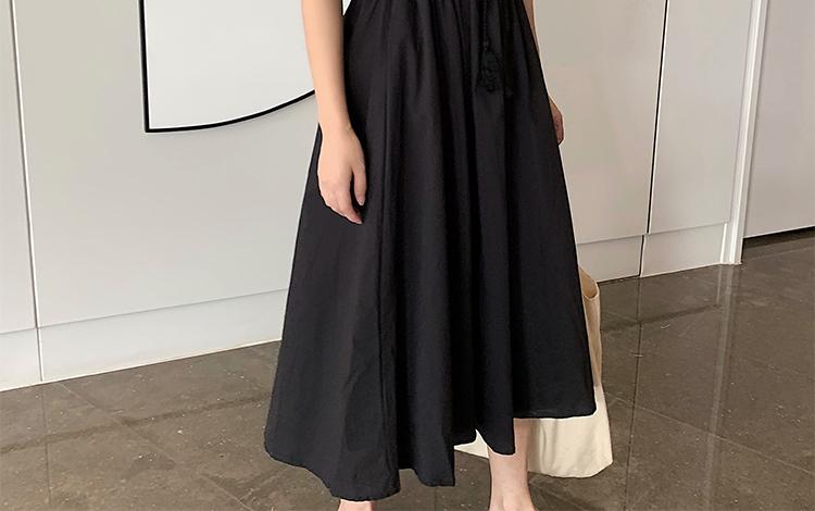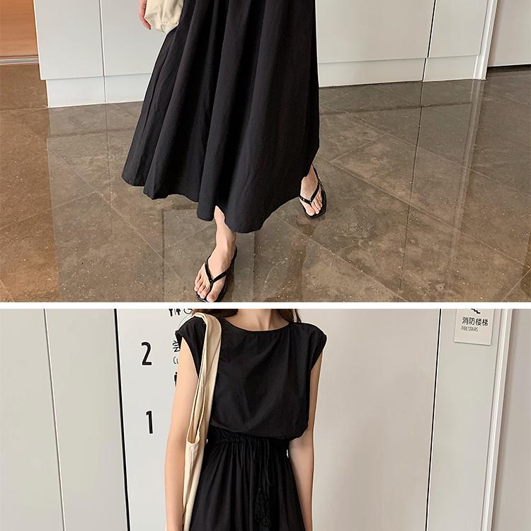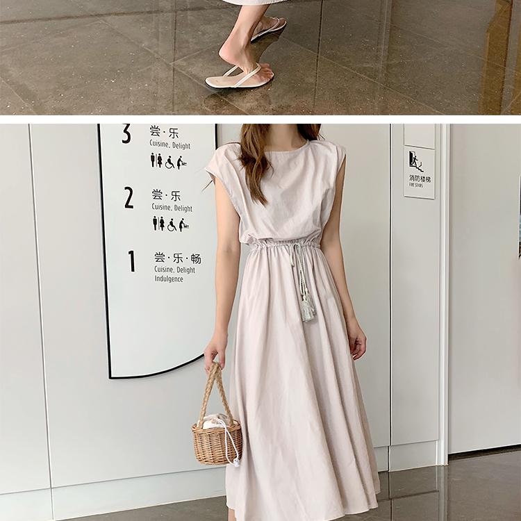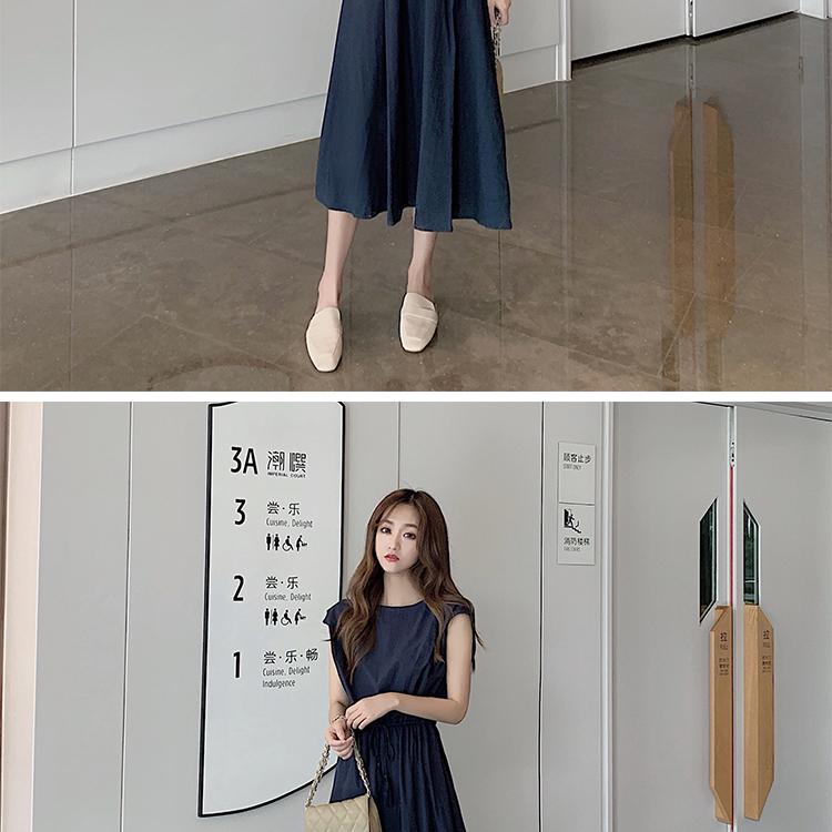 Falda Acampanada Literaria Lotte Verano 2025 Nuevo Estilo Cintura Suelta Talla Grande Algodón y Lino Vestido de Manga Corta para Mujer