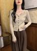 Suéter 2023 nuevo para mujer primavera y otoño cuello en V botón manga larga camiseta básica top suelto holgado exterior suéter