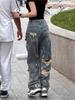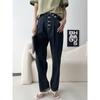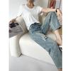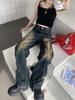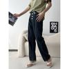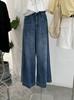 Pantalones vaqueros de pierna ancha y cintura alta Mengzi para mujer, diseño de estilo urbano, estilo informal, estilo papá frito, X760