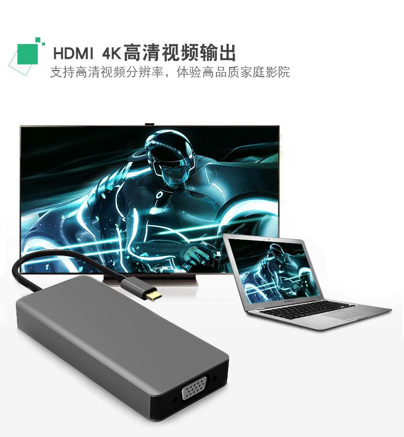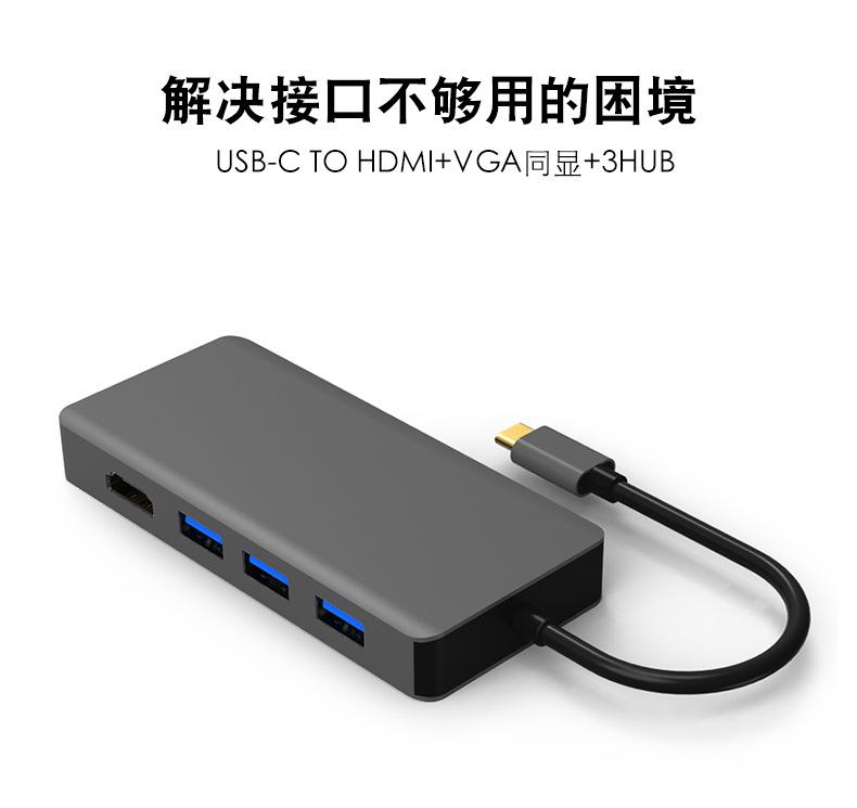 Pantalla simultánea Tipo C a HDMI+VGA+convertidor 3HUB