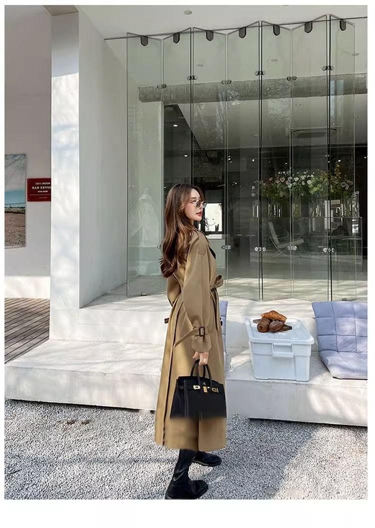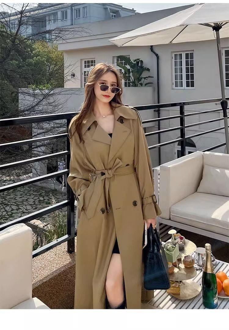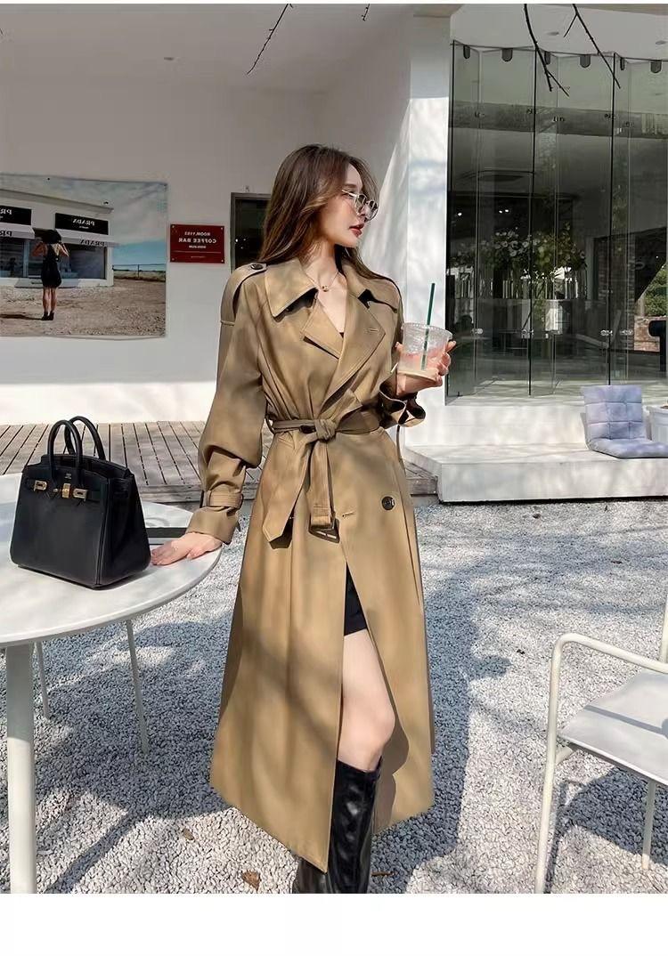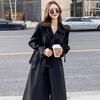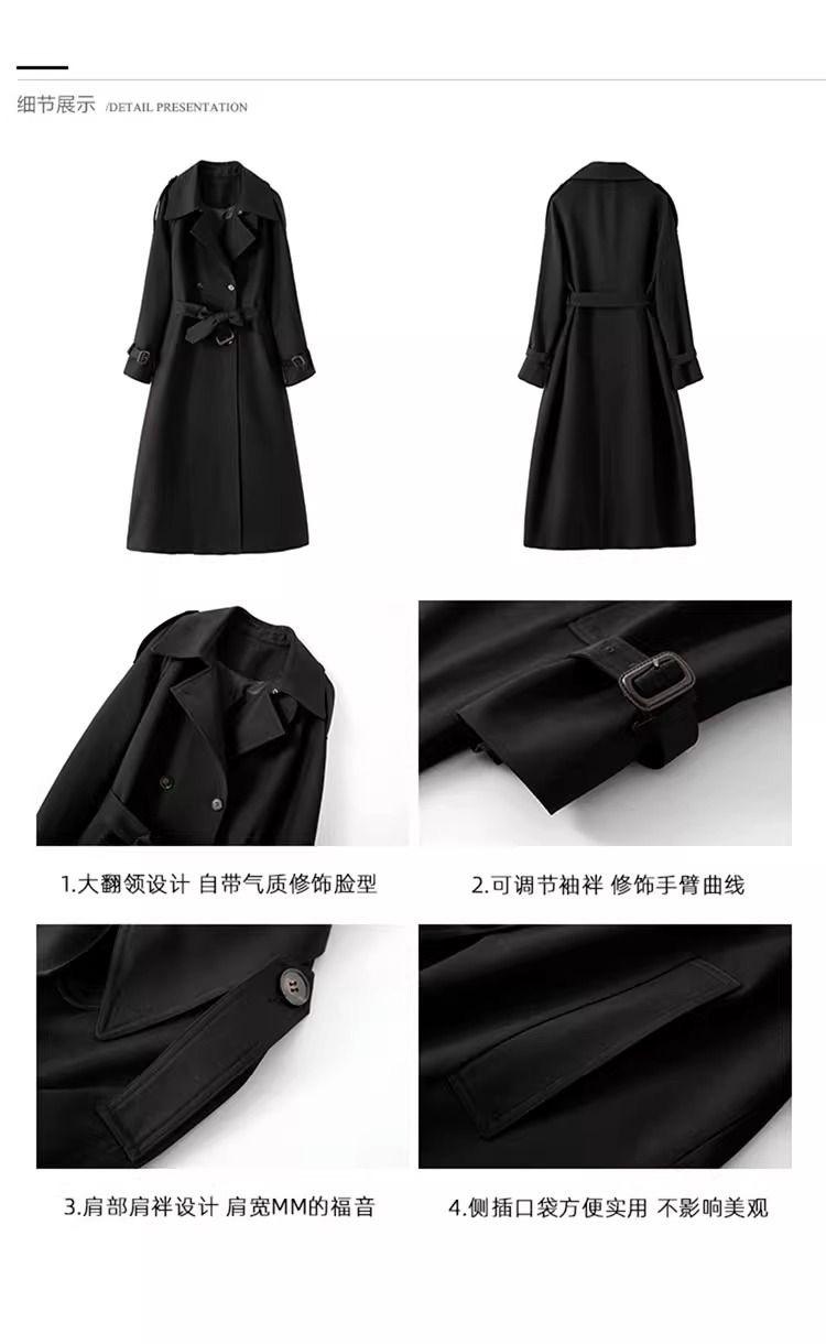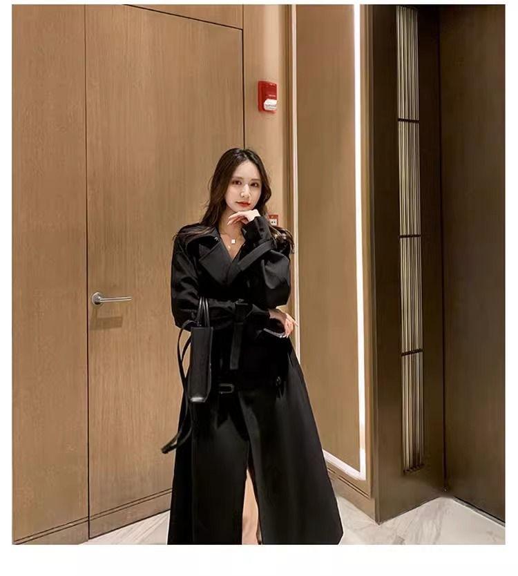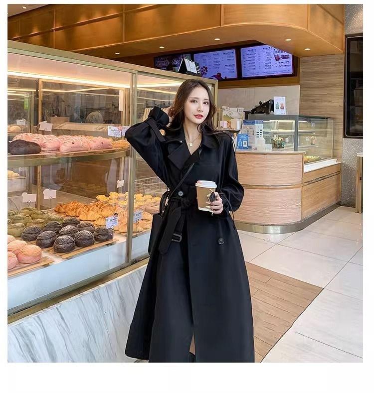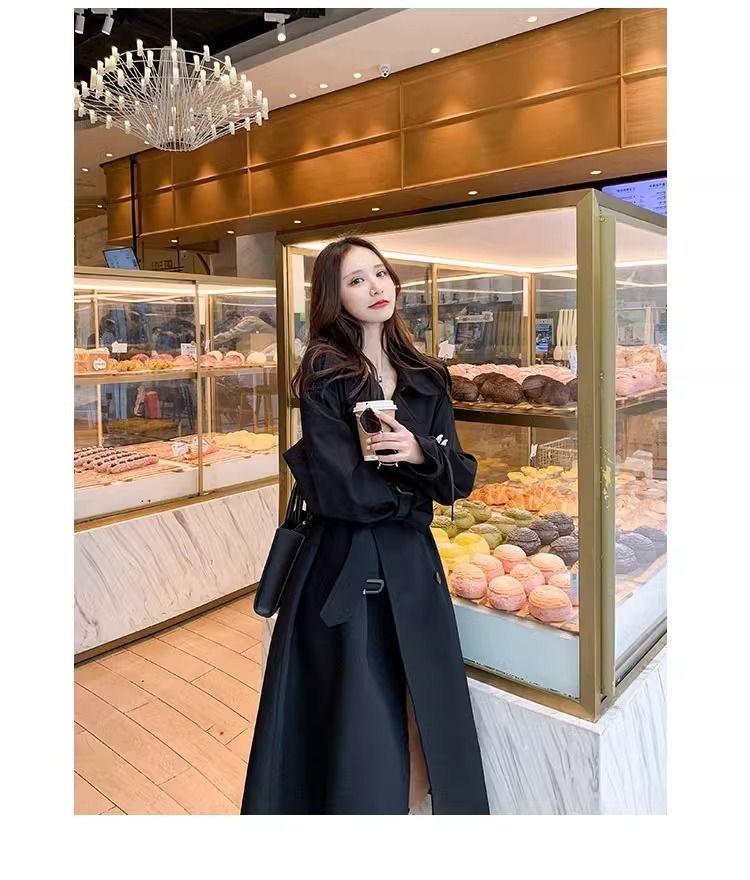 Gabardina negra para mujer, otoño 2023, estilo británico, largo medio, por encima de la rodilla, estilo coreano, abrigo elegante y adelgazante.