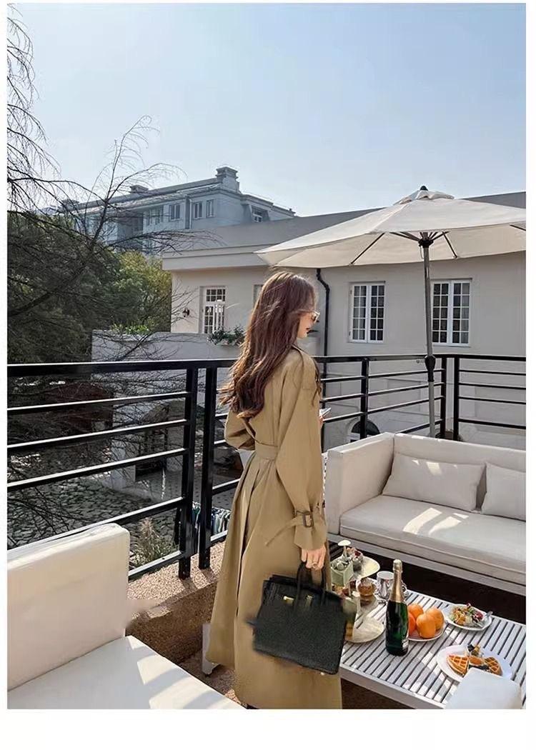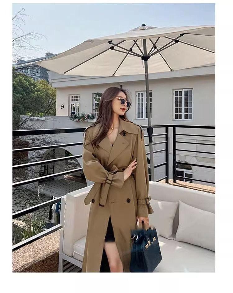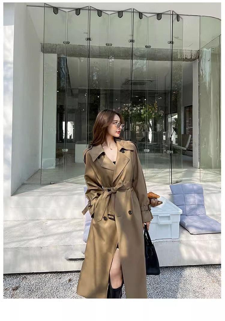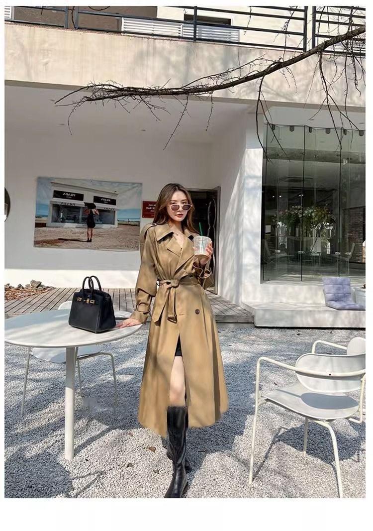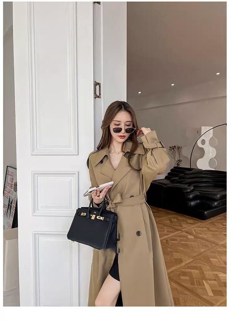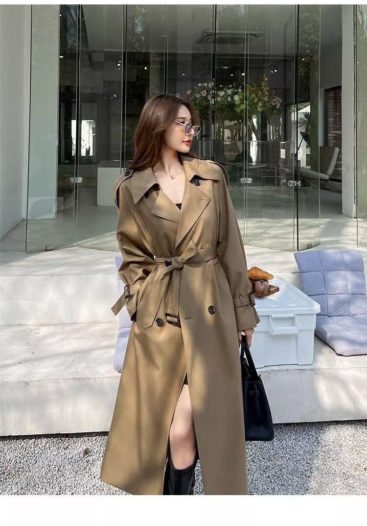 Gabardina negra para mujer, otoño 2023, estilo británico, largo medio, por encima de la rodilla, estilo coreano, abrigo elegante y adelgazante.