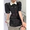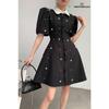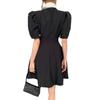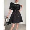 Diseño Nicho Francés Manga Abullonada Cintura Vestido Elegante 2024 Verano Nuevo Vestidito Negro de Mujer