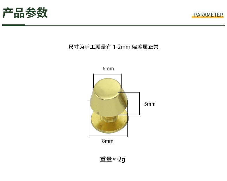Bolso de Cuero Pie Clavo Remache Herrajes para Equipaje Accesorios Base de Bolso 8mm Clavo Cubeta Hebilla Decorativa Redonda Accesorios de Ropa