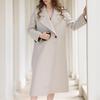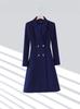 Abrigo de Lana de Doble Vista con Cuello Azul Marino de Doble Botonadura para Mujer, Combinación de Colores Elegante, Abrigo Versátil, Abrigo de Lana Suelto Vintage