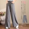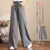 Pantalones holgados de lino y algodón para primavera y verano de estilo coreano, de pierna ancha y cintura alta, rectos, de lino, informales, talla grande