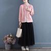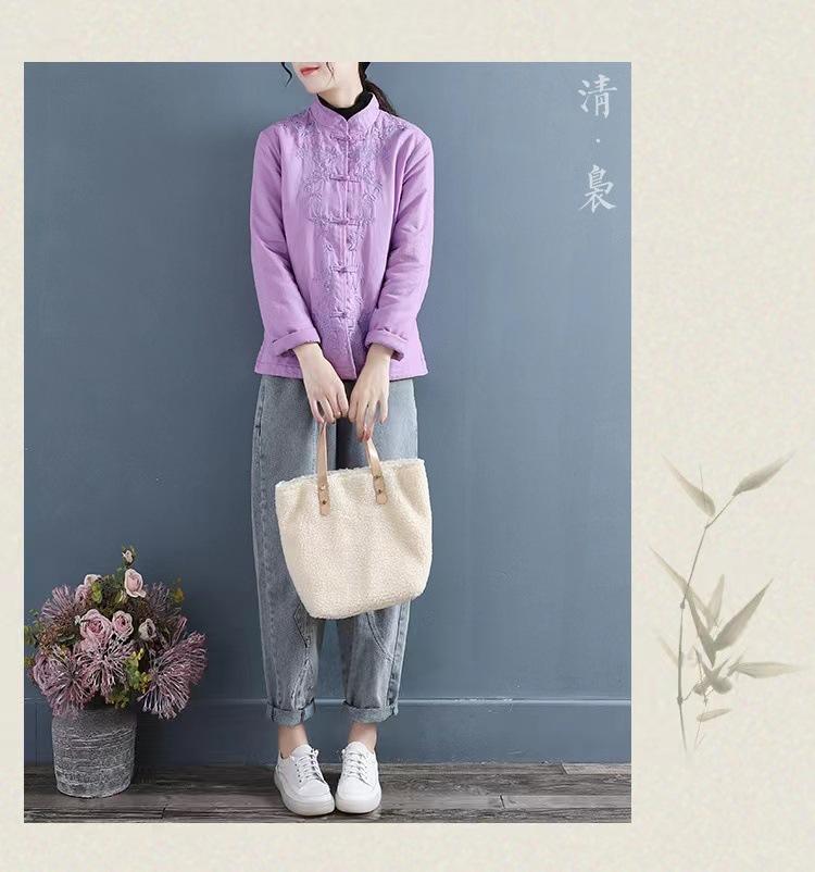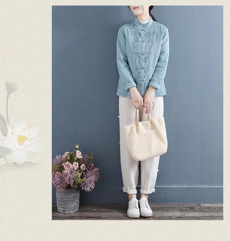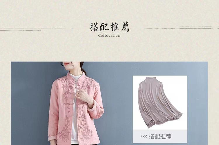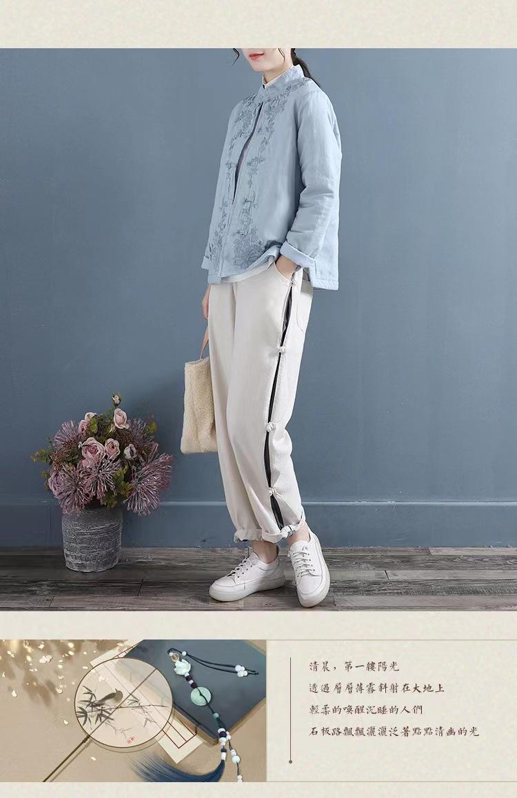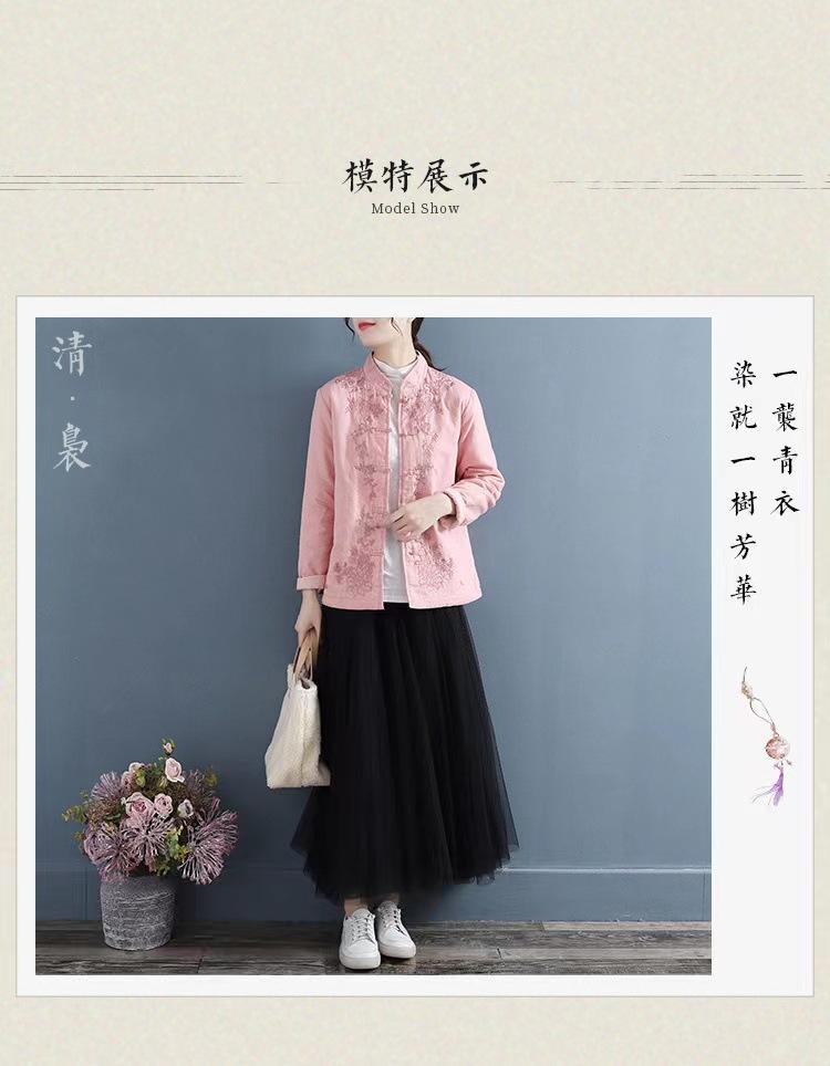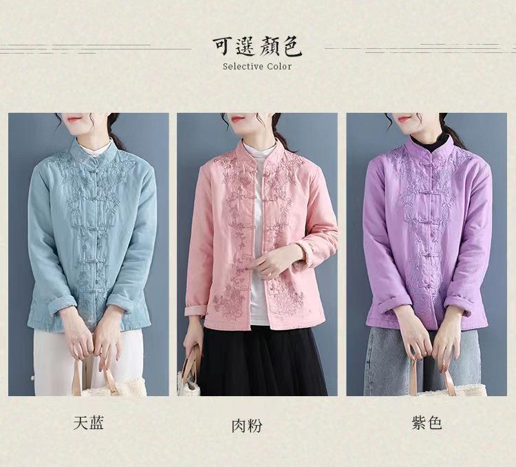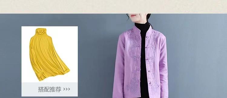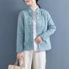 Abrigo Delgado de Algodón Retro con Hebilla de Estilo Chino para Mujer con Bordado Artístico Ropa Exterior Chaqueta de Algodón Casual Acolchada Chaqueta con Cuello Alto