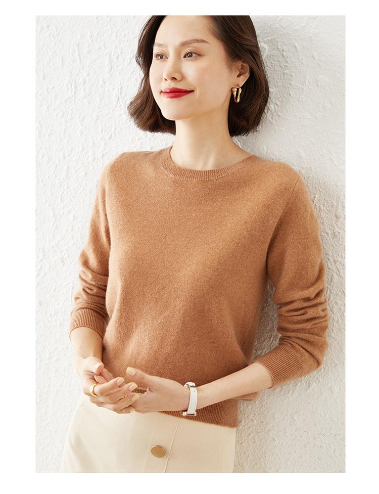 Suéter de lana de nuevo estilo para otoño e invierno de 2021, jersey de cuello redondo para mujer, jersey de lana suelto de color sólido, suéter de talla grande para mujer, venta al por mayor