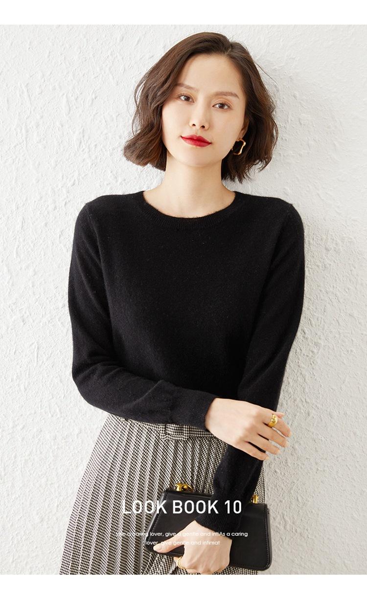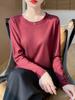 Suéter de punto elegante y sencillo con cuello redondo para mujer, ajustado, base, camisa, otoño e invierno, nuevo, suelto, que cubre el vientre, camisa exterior.