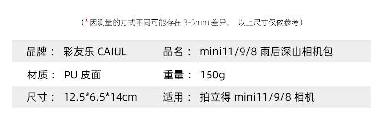 Adecuado para Polaroid Mini11/9/8/12 Bolsa Retro de Cuero PU para Cámara, Bolso de Hombro para Cámara Trasera/Cosméticos