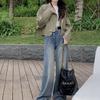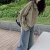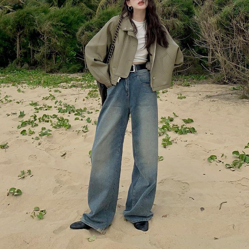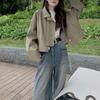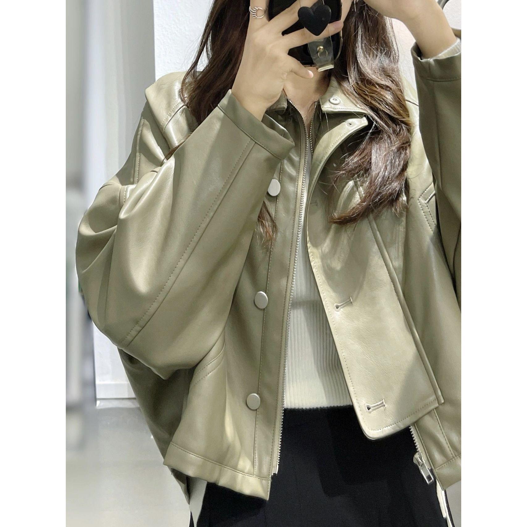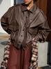 Chaqueta Corta de Cuero con Cuello Mao para Mujer 2025 Primavera y Otoño Nuevo Americano Retro de Alta Gama Holgada Casual