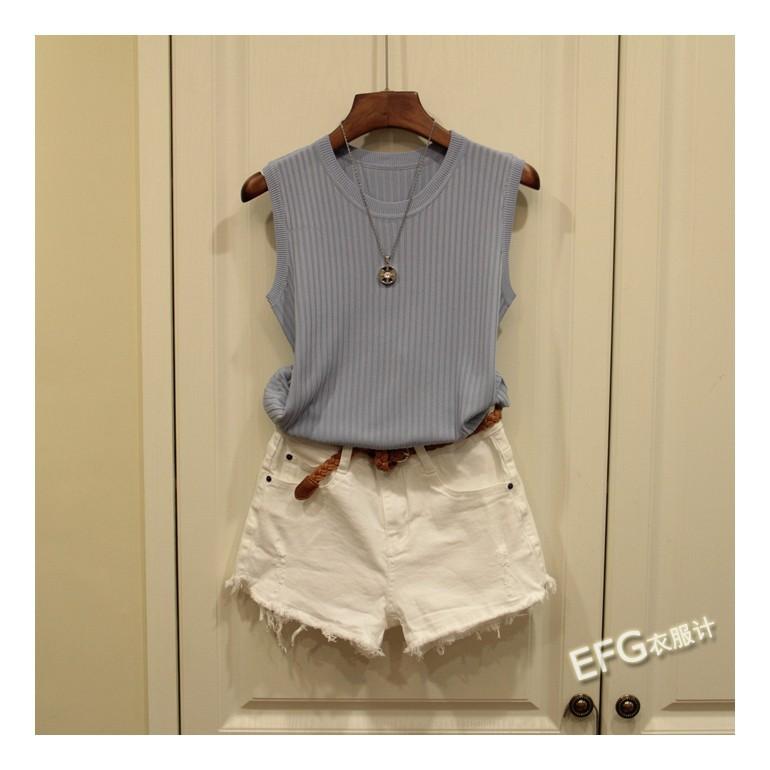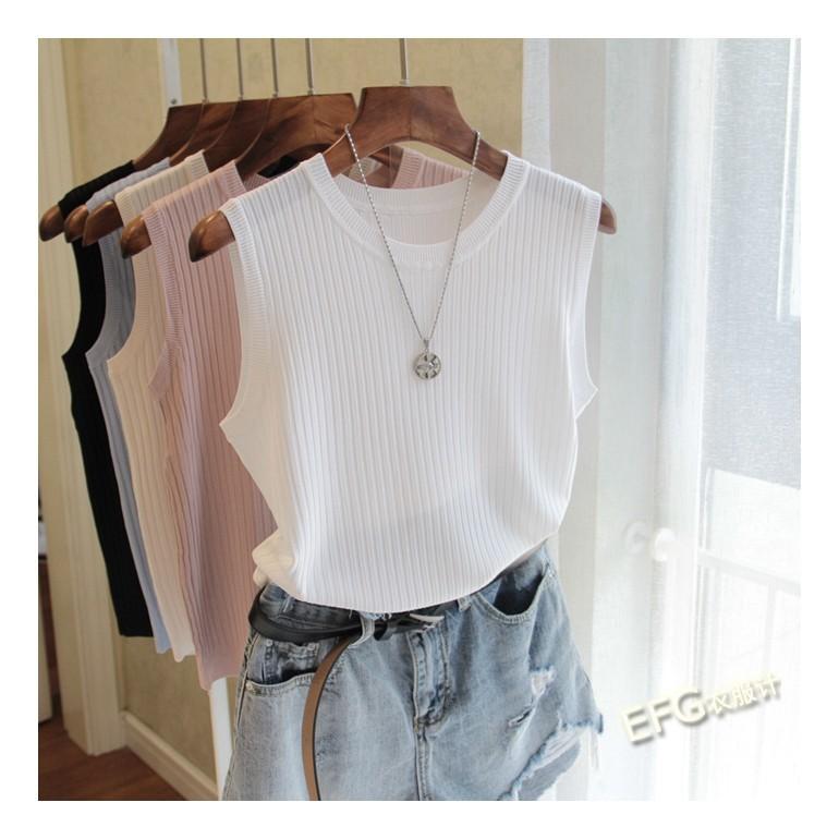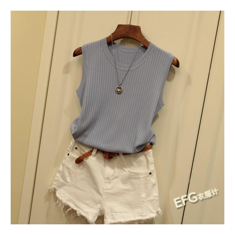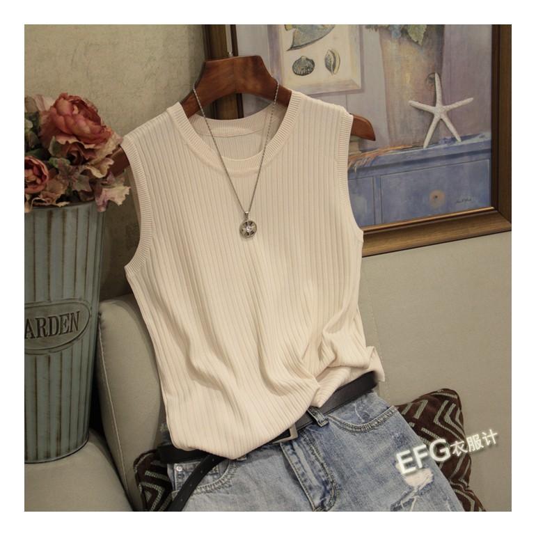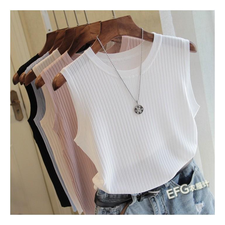 Primavera/Verano 2025 Nuevo Chaleco de Punto Versátil Delgado sin Mangas de Seda Helada con Tirantes Anchos y Cuello Redondo para Mujer Top Camiseta de Mujer